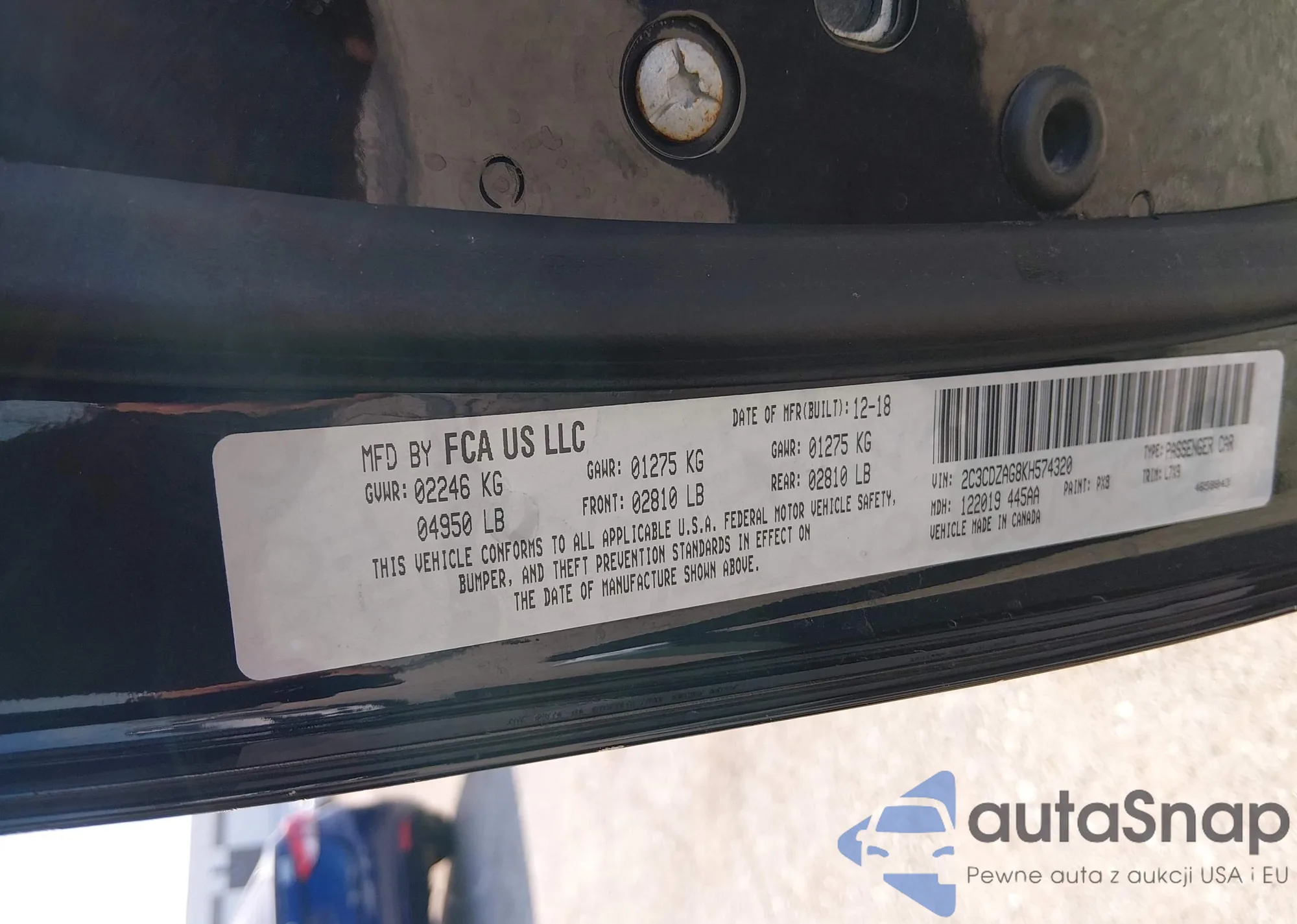 LOT: 43789701 VIN: 2C3CDZAG8KH574320