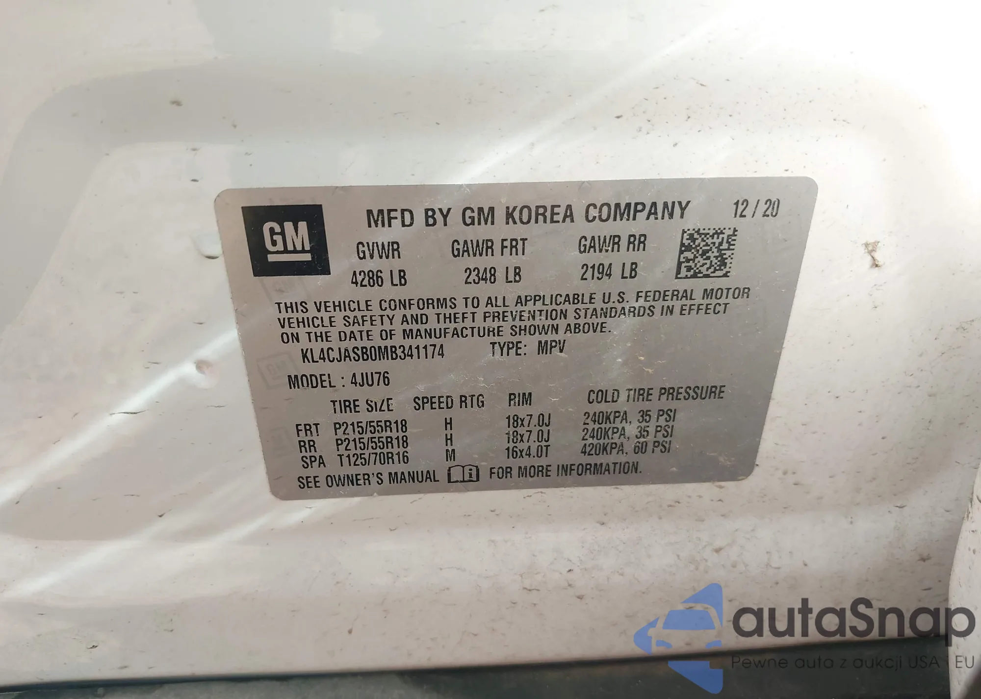 • VIN KL4CJASB0MB341174