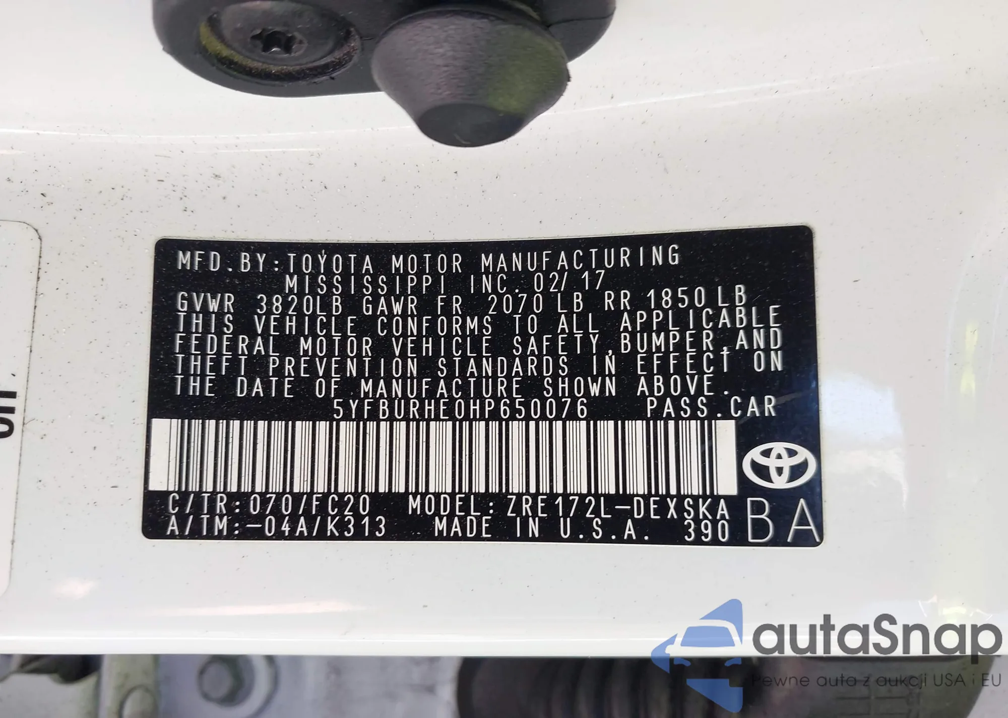 • VIN 4T1BF3EKXAU508288