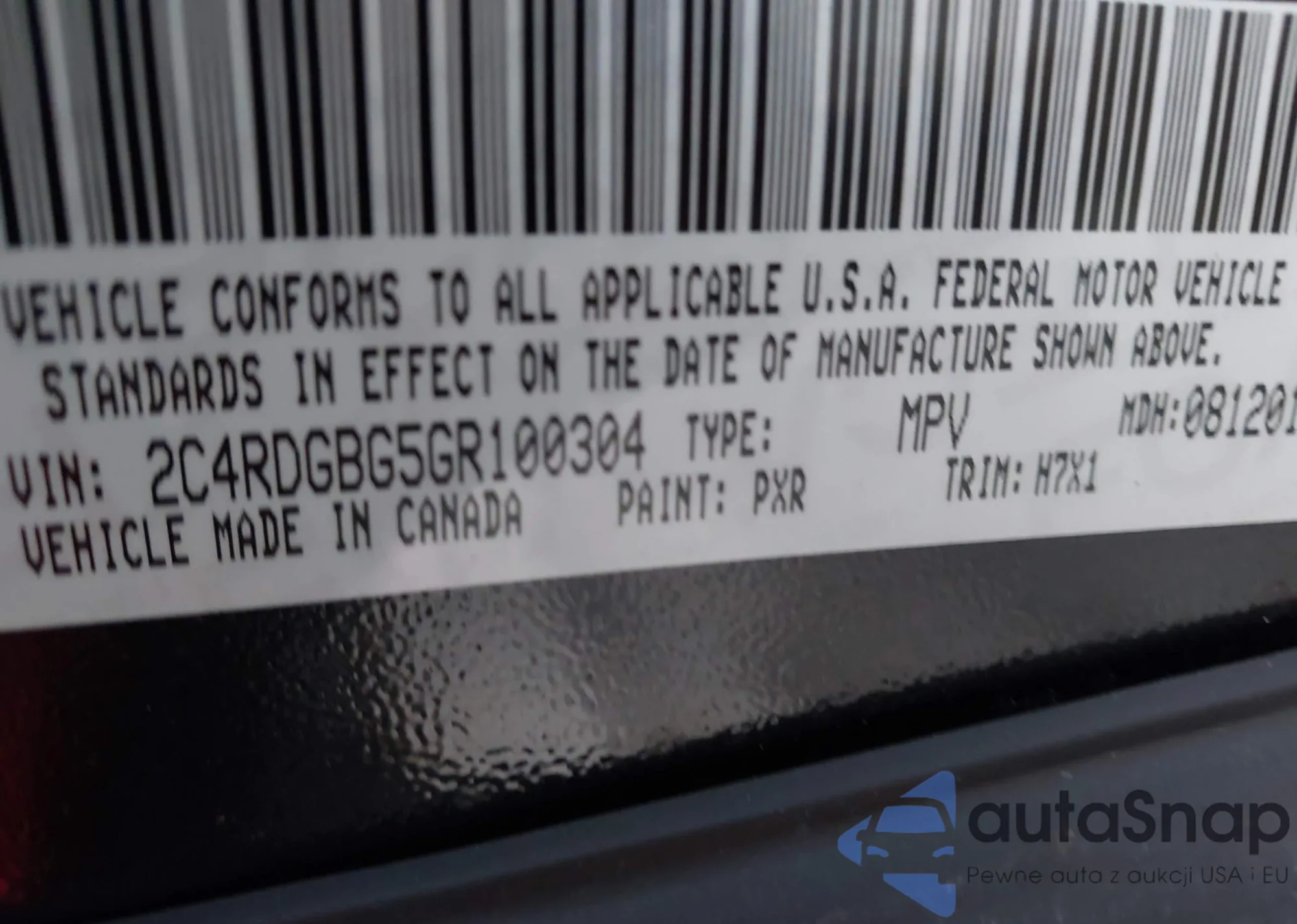 • VIN 2C4RDGBG5GR100304