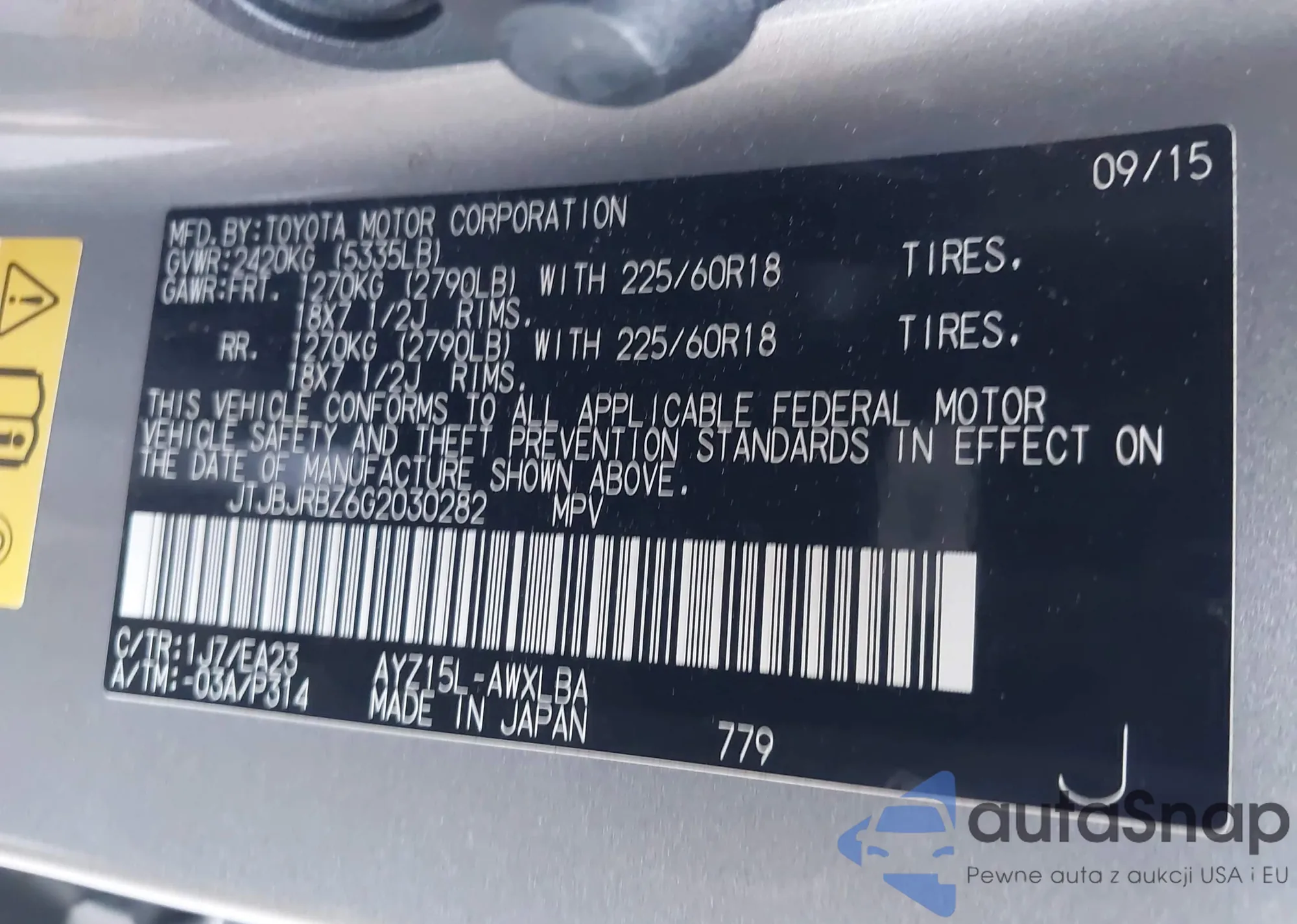 LOT: 44039767 VIN: JTJBJRBZ6G2030282