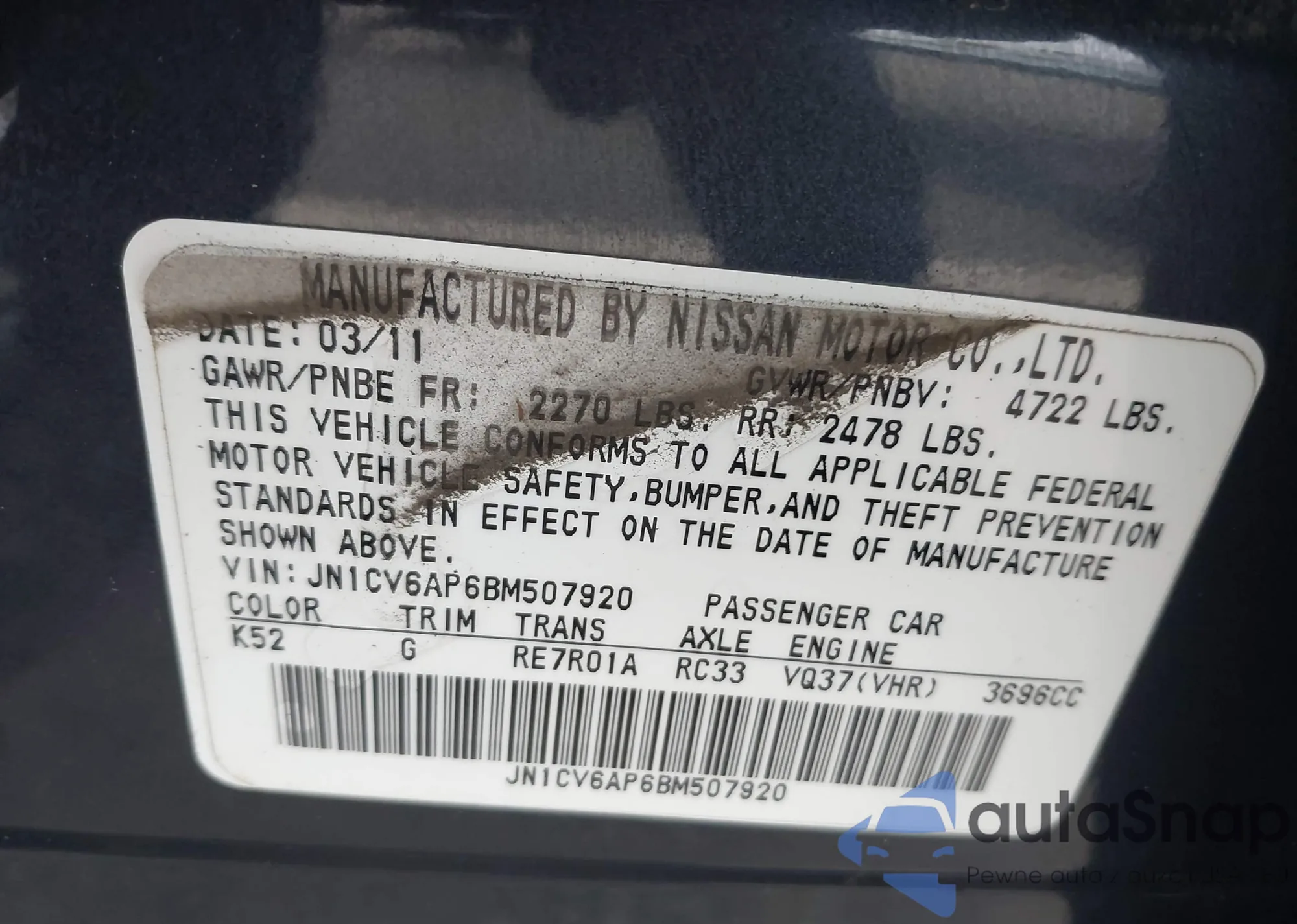 • VIN 5N1AT3BA2MC733492