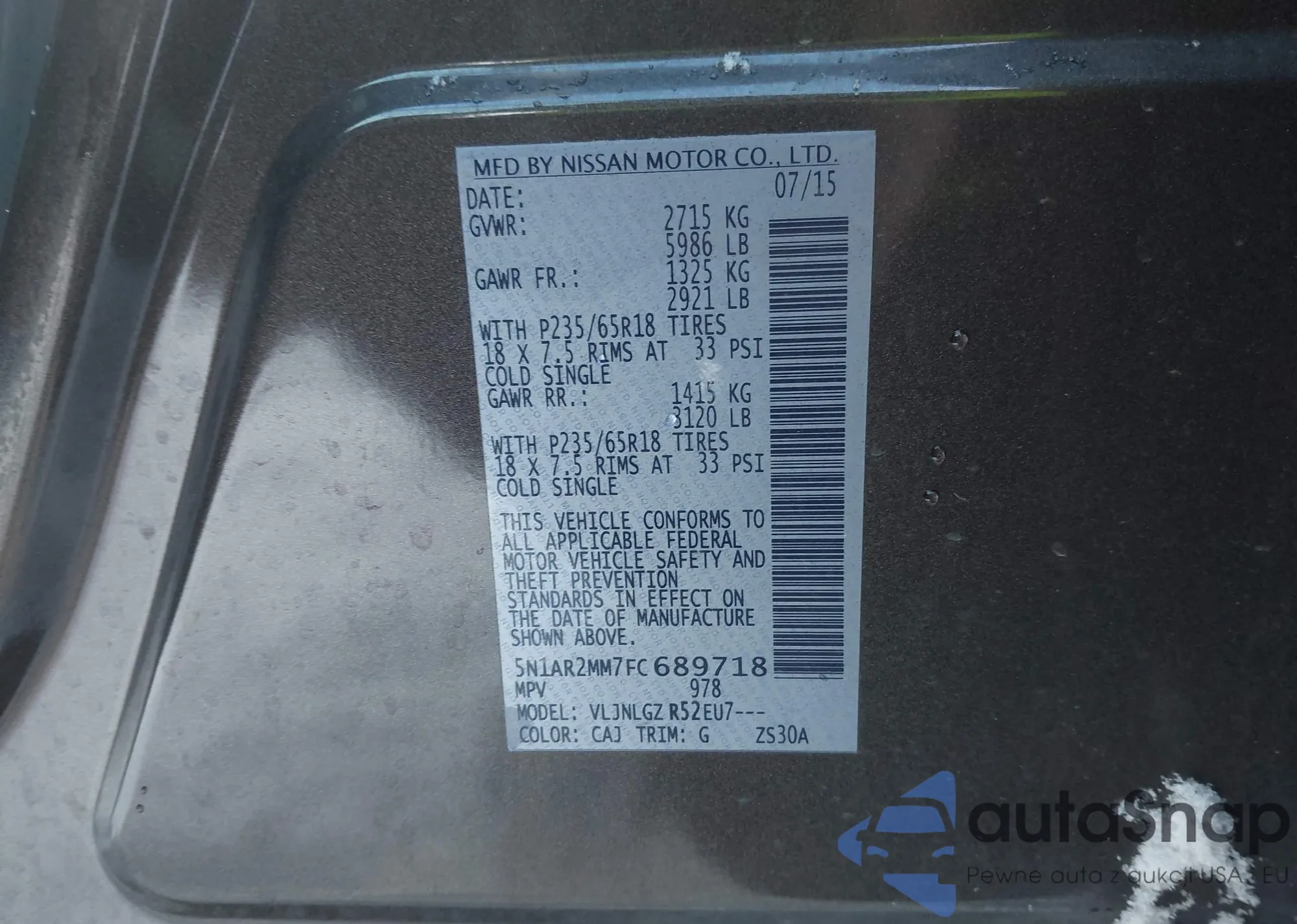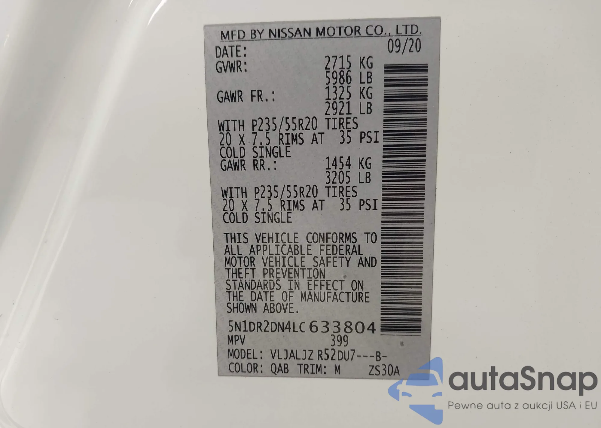 • VIN JN8AS5MV9DW652107
