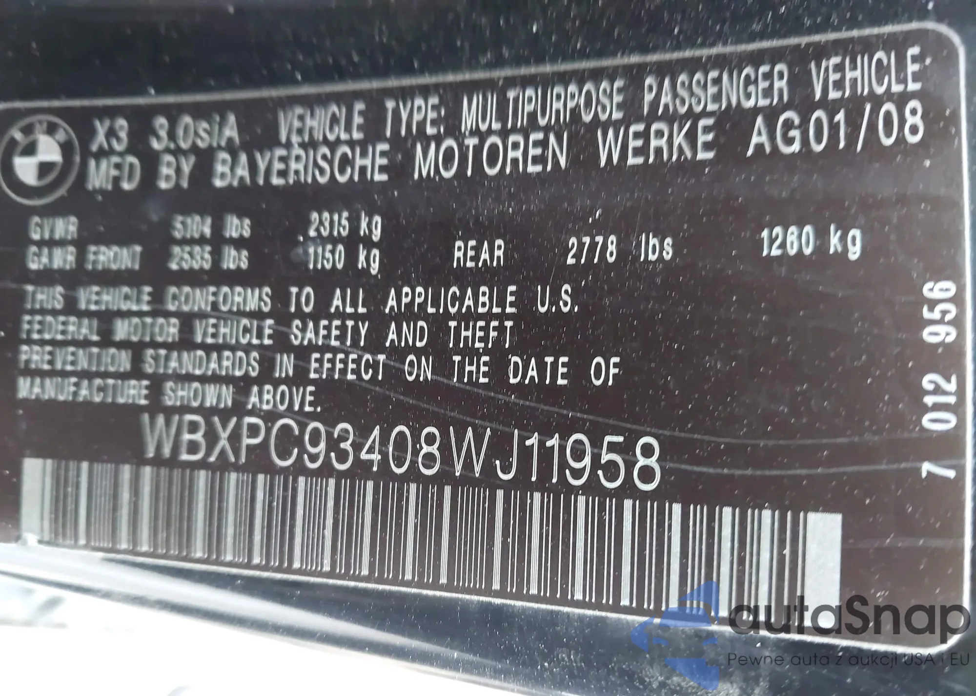 • VIN WBXPC93408WJ11958
