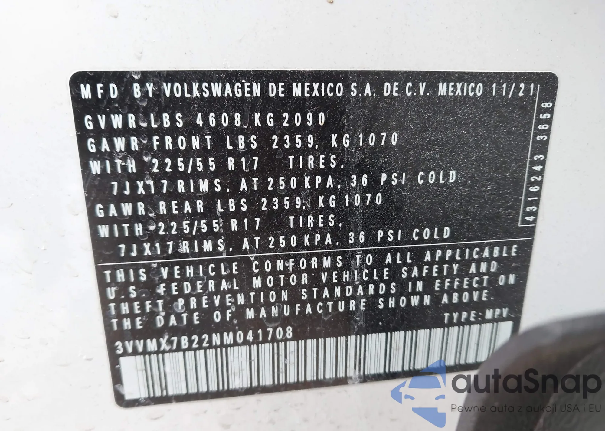 • VIN 3VVMX7B22NM041708
