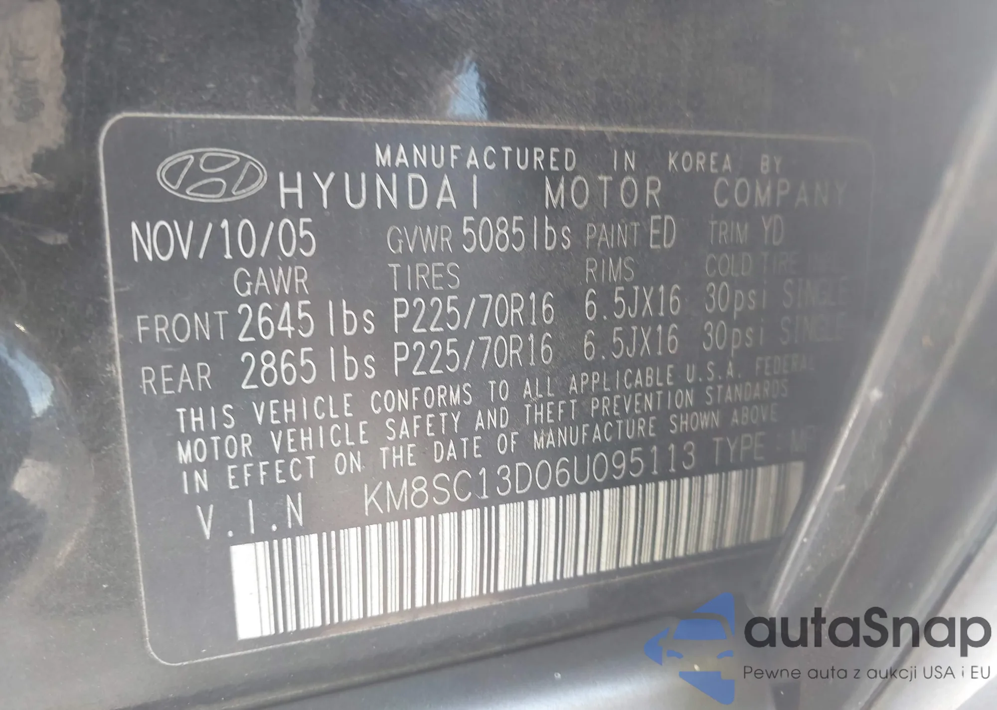 • VIN KM8SC13D06U095113