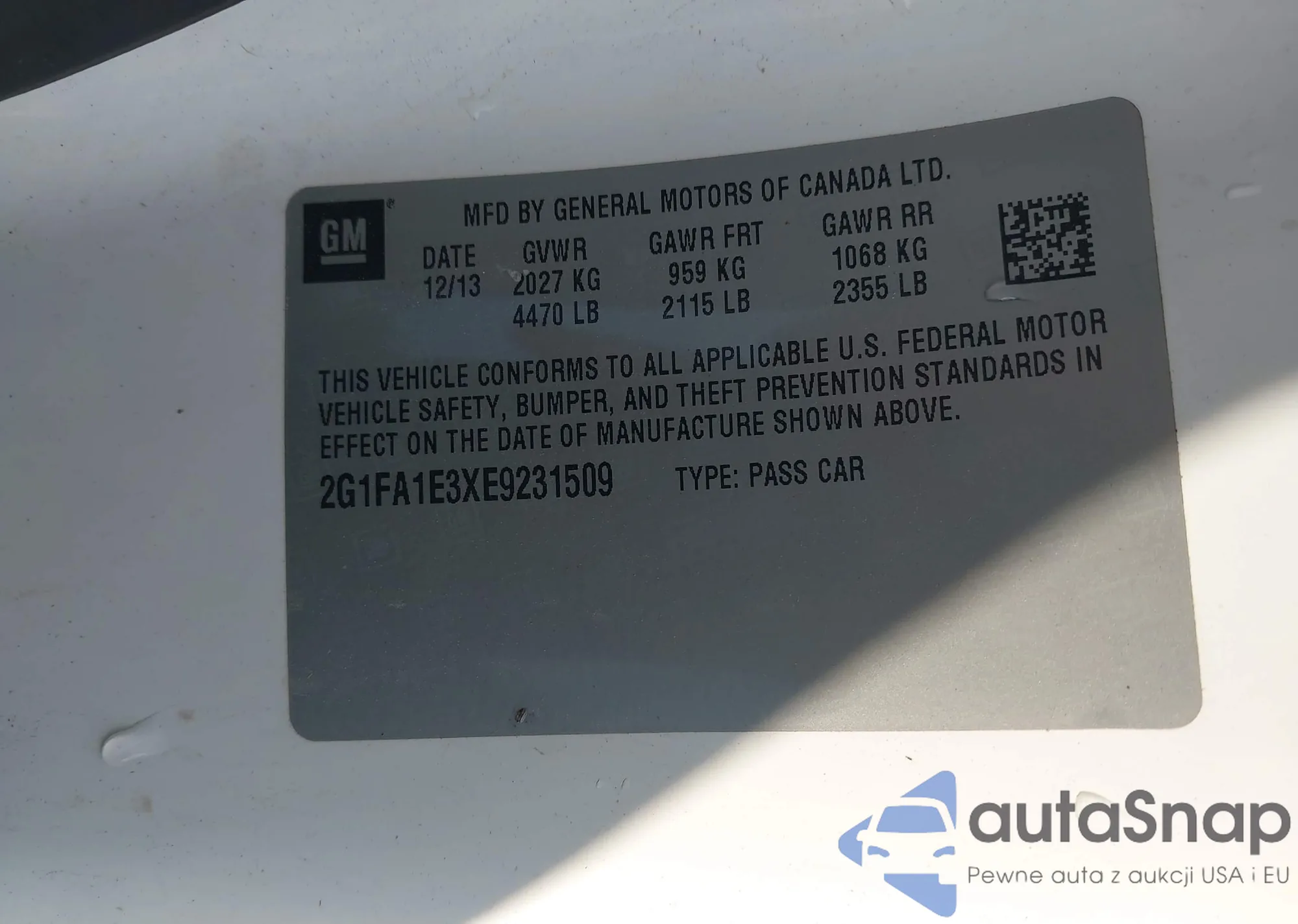• VIN 2G1FA1E3XE9231509