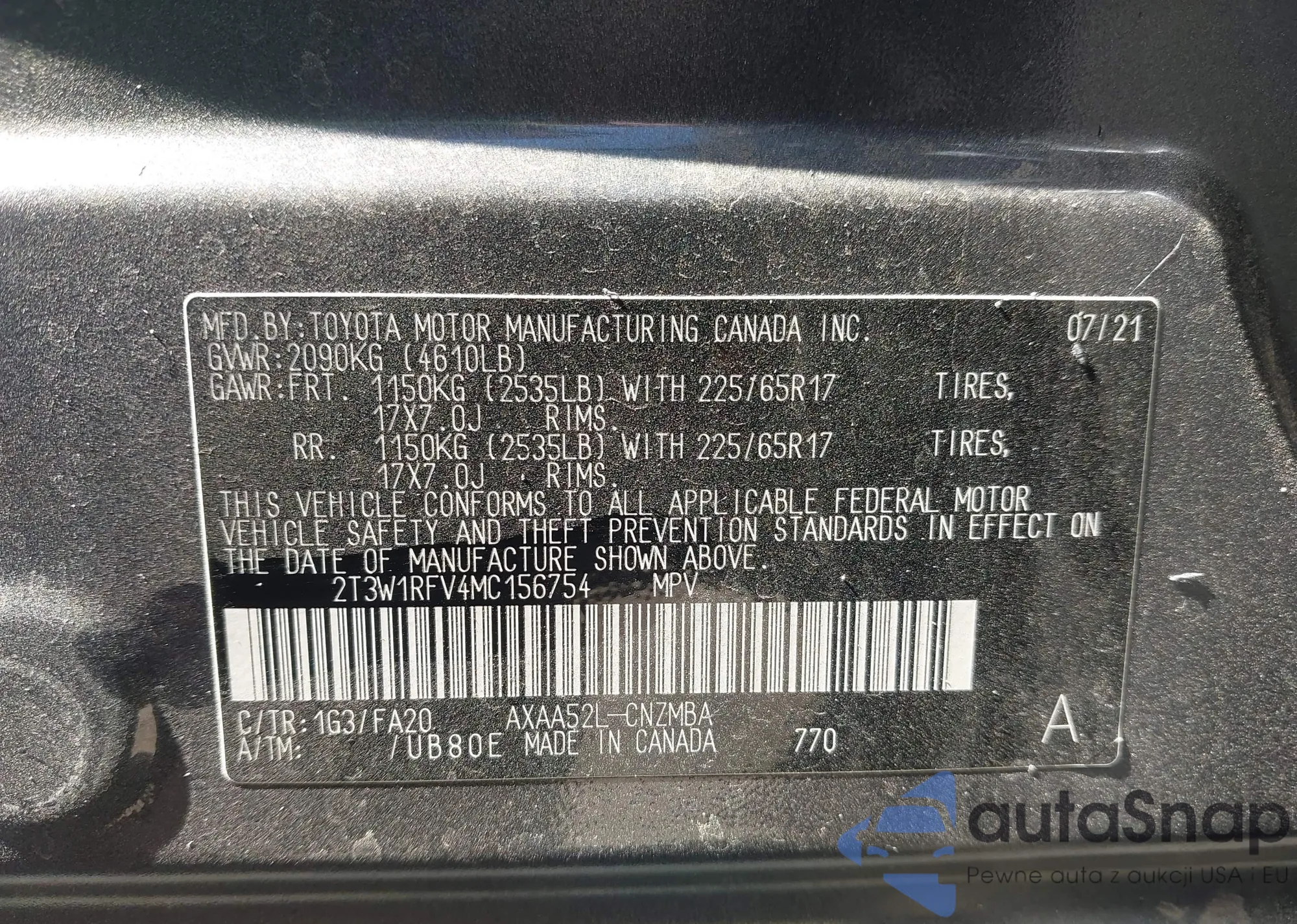 LOT: 43465146 VIN: 2T3W1RFV4MC156754