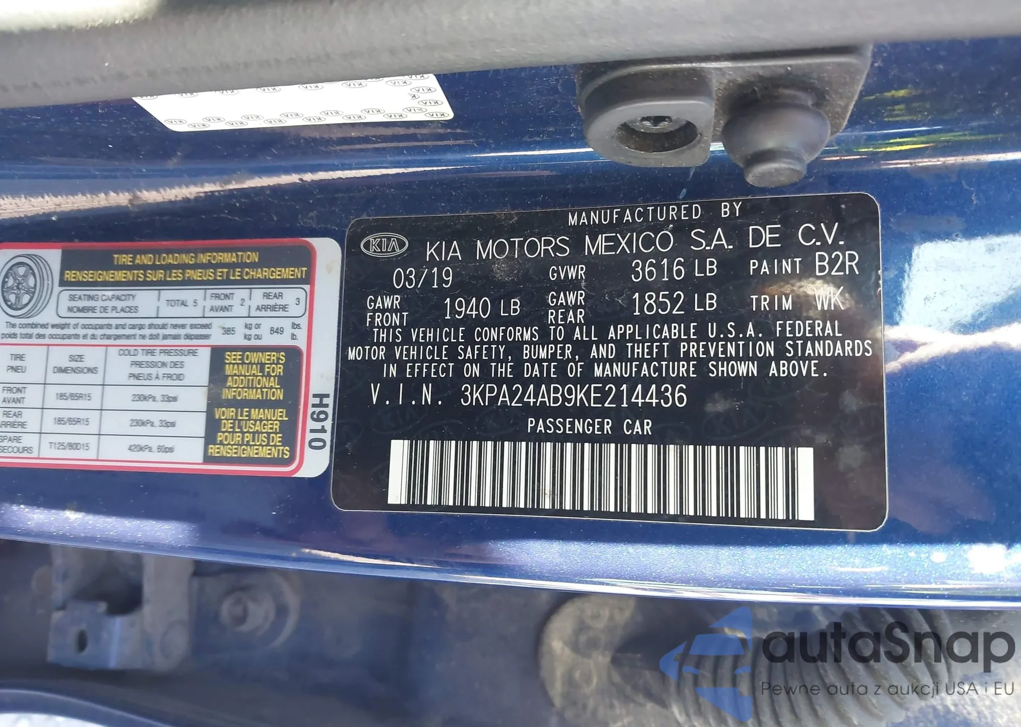 • VIN 3KPA24AB9KE214436