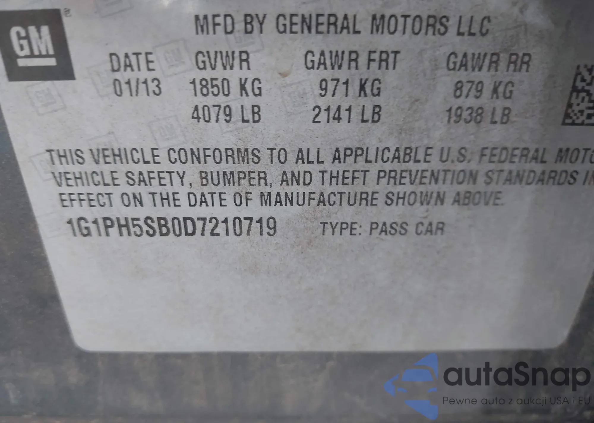 LOT: 43702529 VIN: 1G1PH5SB0D7210719
