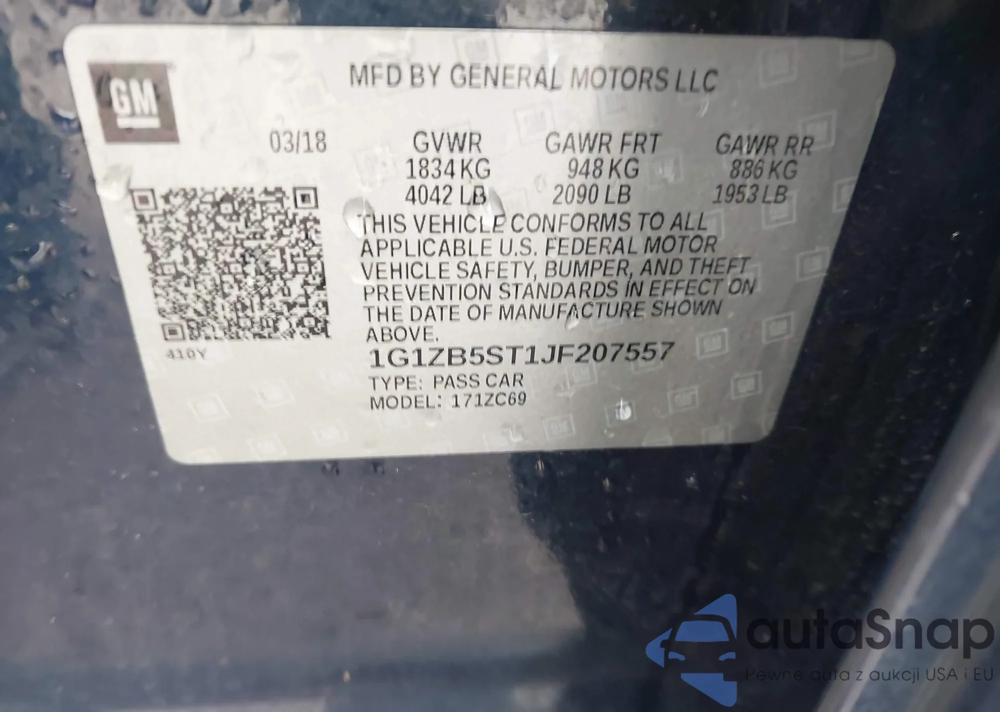 LOT: 43831852 VIN: 1G1ZB5ST1JF207557