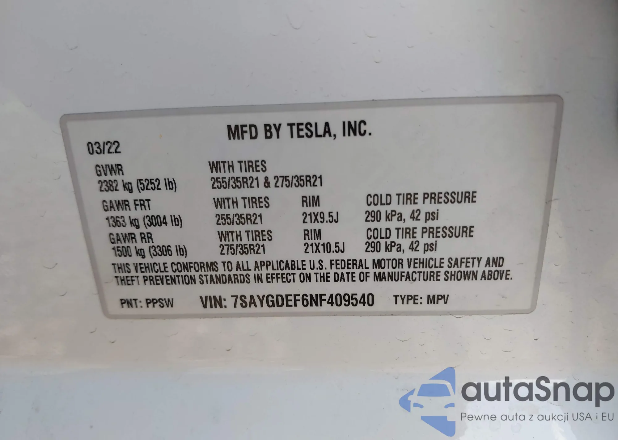 • VIN 7SAYGDEF6NF409540