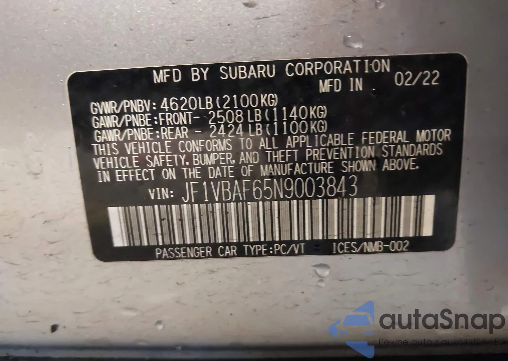 • VIN JF1VBAF65N9003843