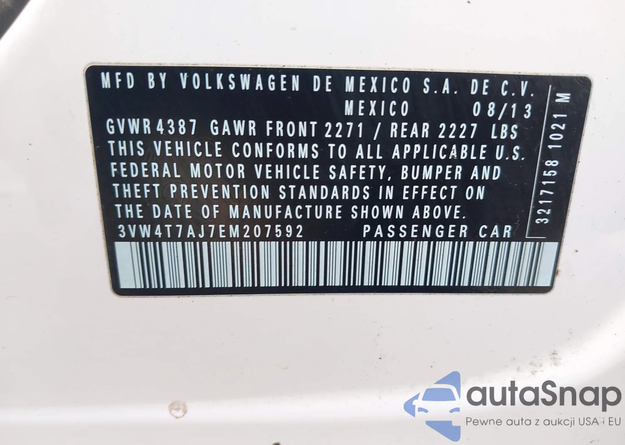 • VIN 3VW4T7AJ7EM207592