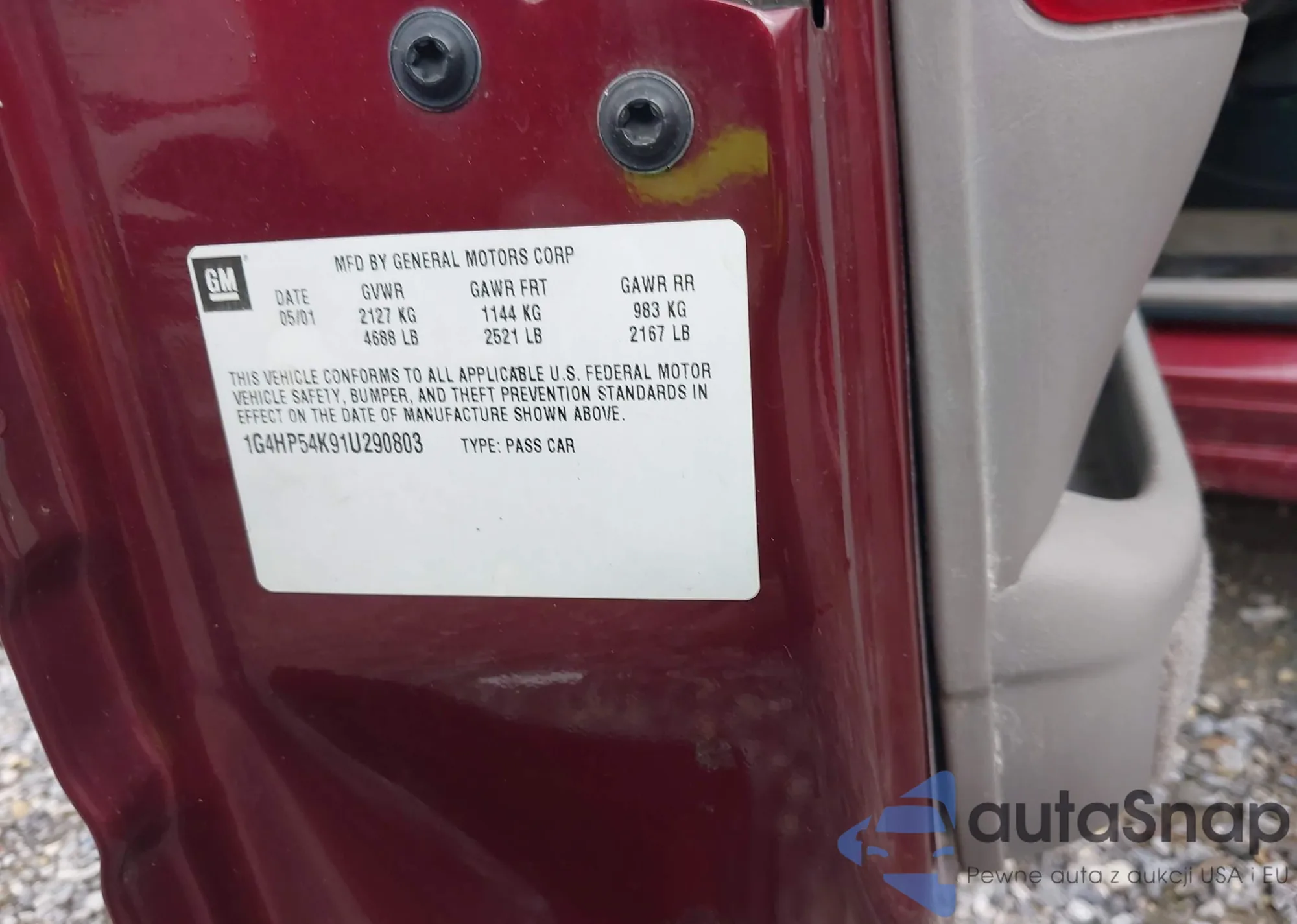 2001 Buick Lesabre Custom from USA, damaged, VIN 1G4HP54K91U290803