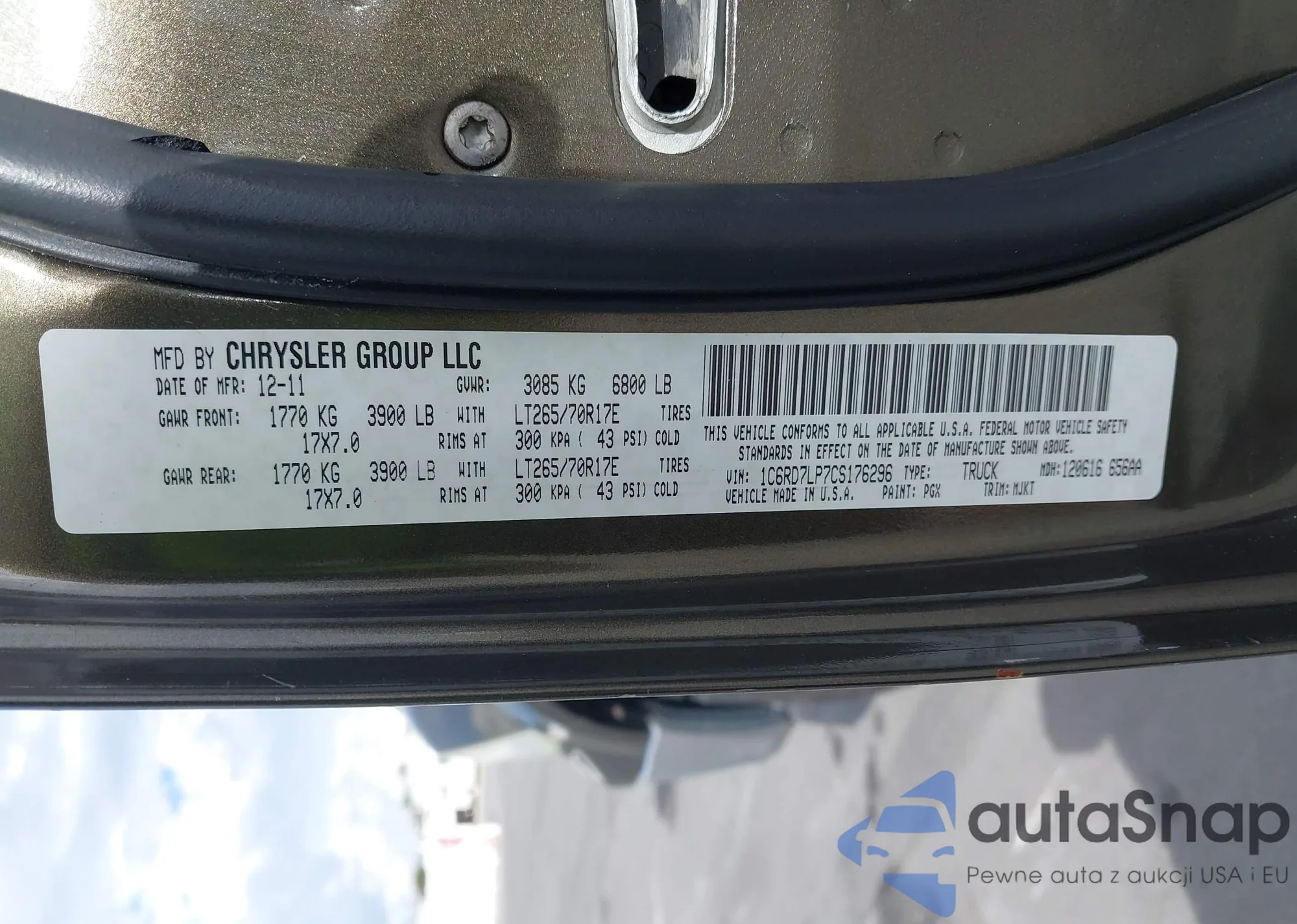 • VIN 1C6RD7LP7CS176296