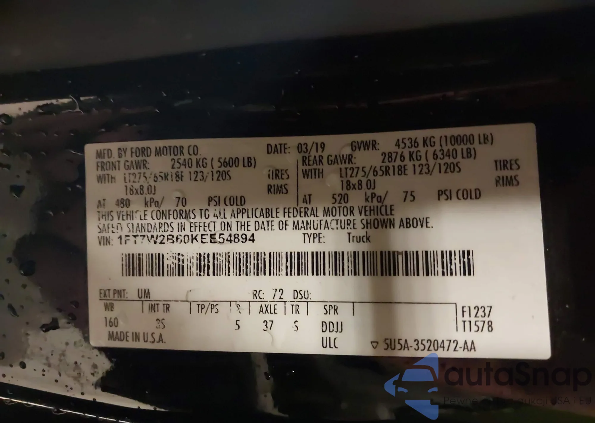 • VIN 1FT7W2B60KEE54894