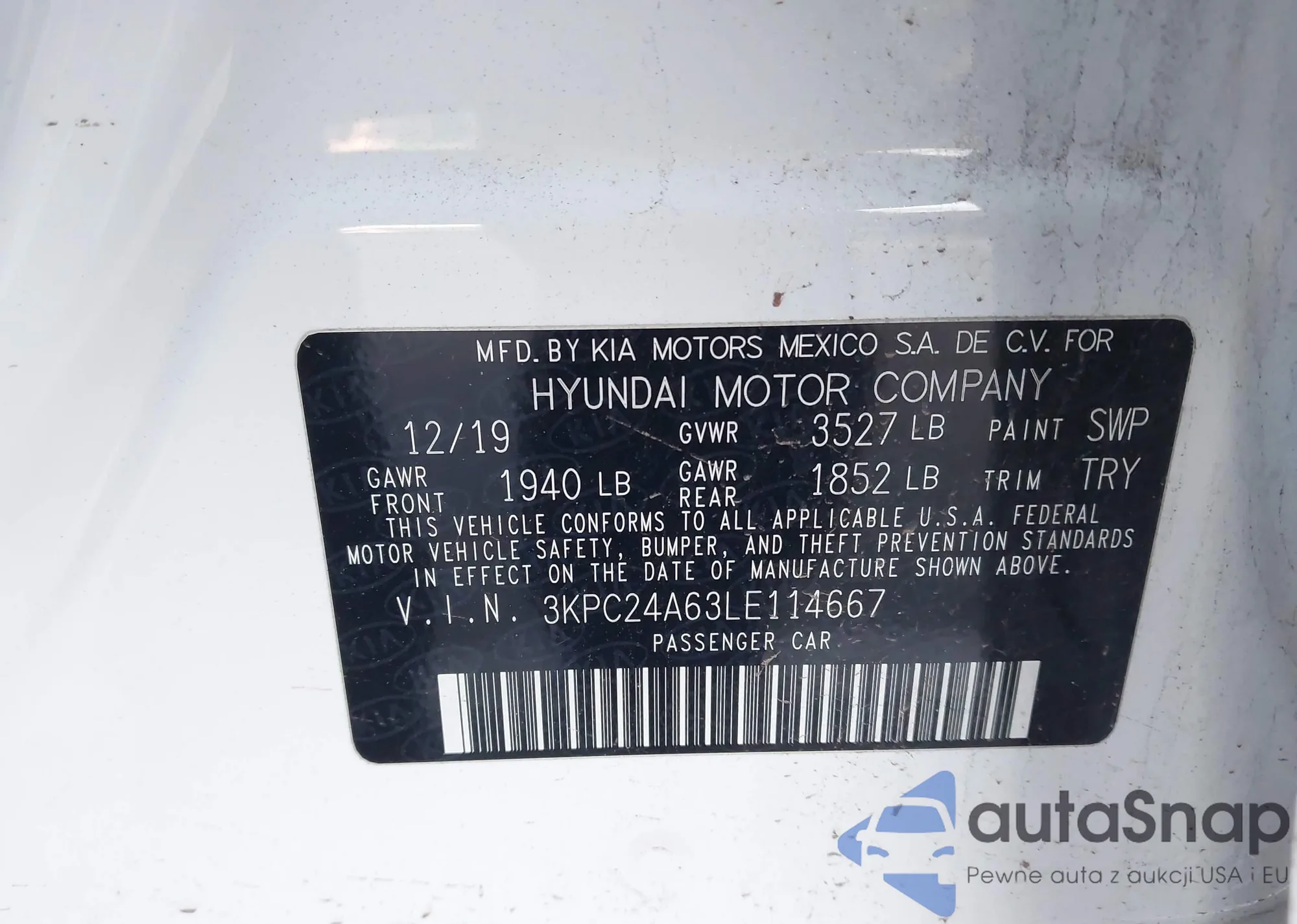 • VIN 3KPC24A63LE114667