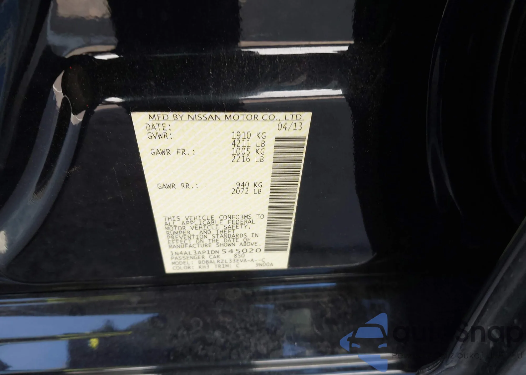 • VIN 1N4AL3AP1DN545020