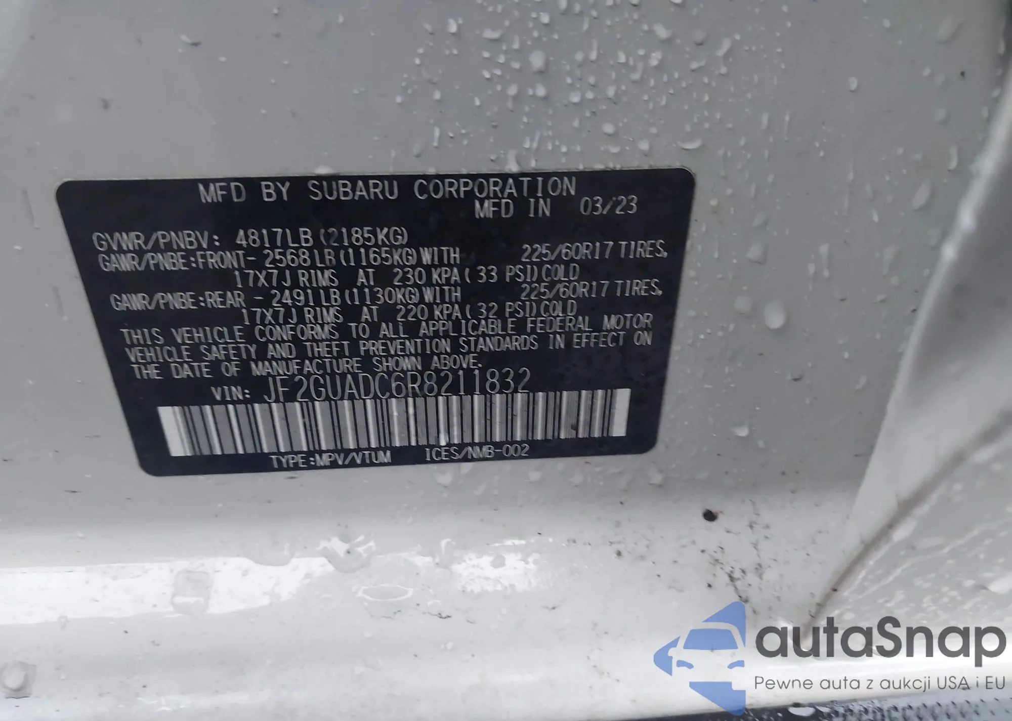 • VIN JF2GUADC6R8211832