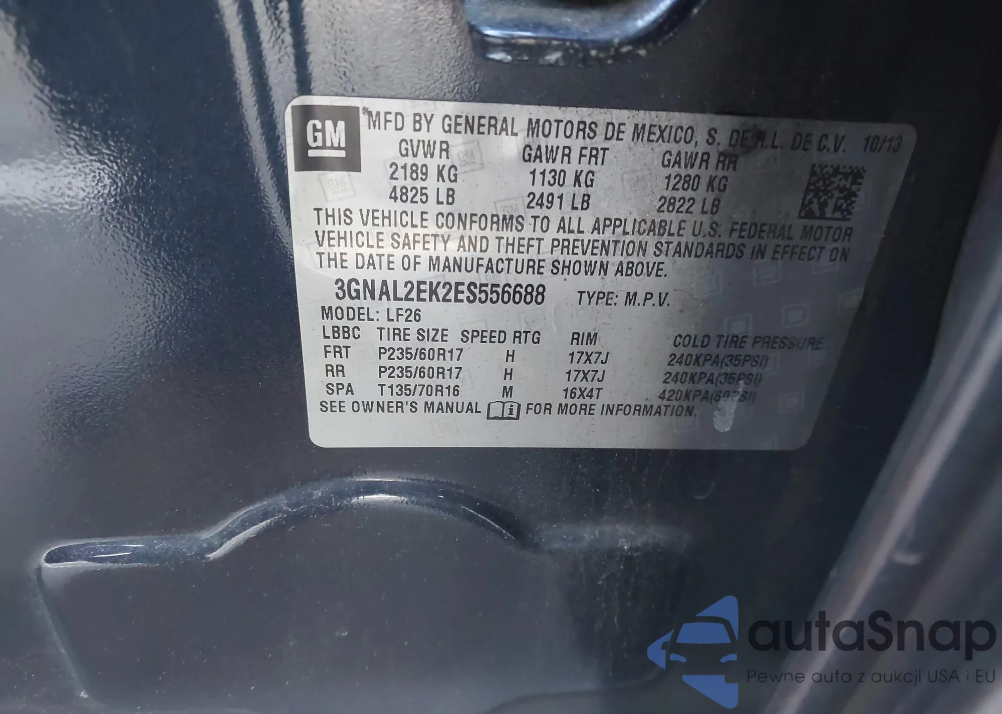 • VIN 3GNAL2EK2ES556688