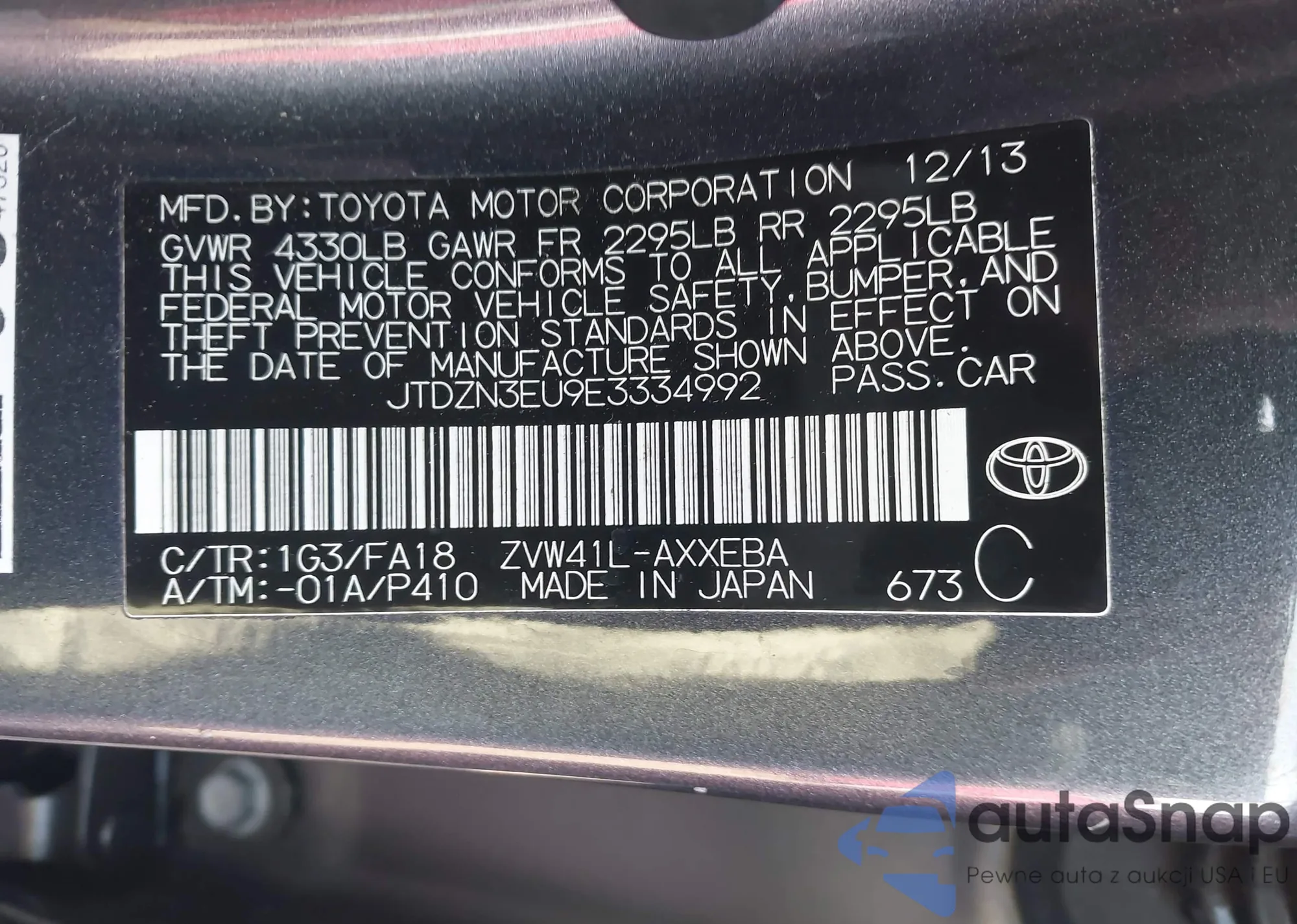 LOT: 43846693 VIN: JTDZN3EU9E3334992