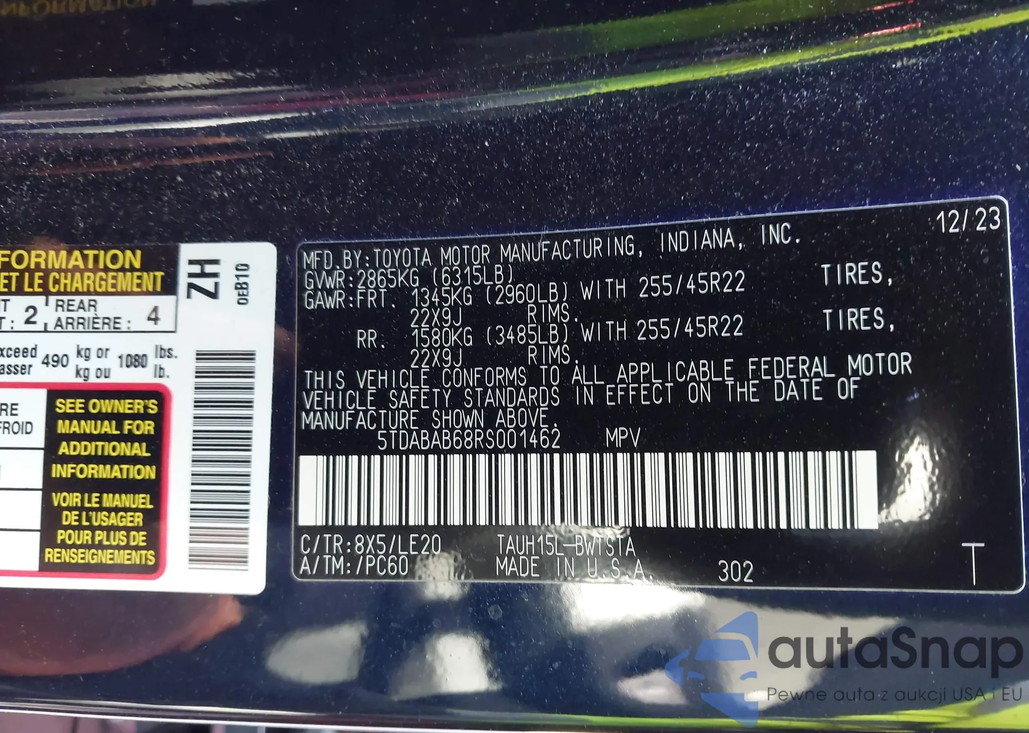 • VIN 5TDABAB68RS001462