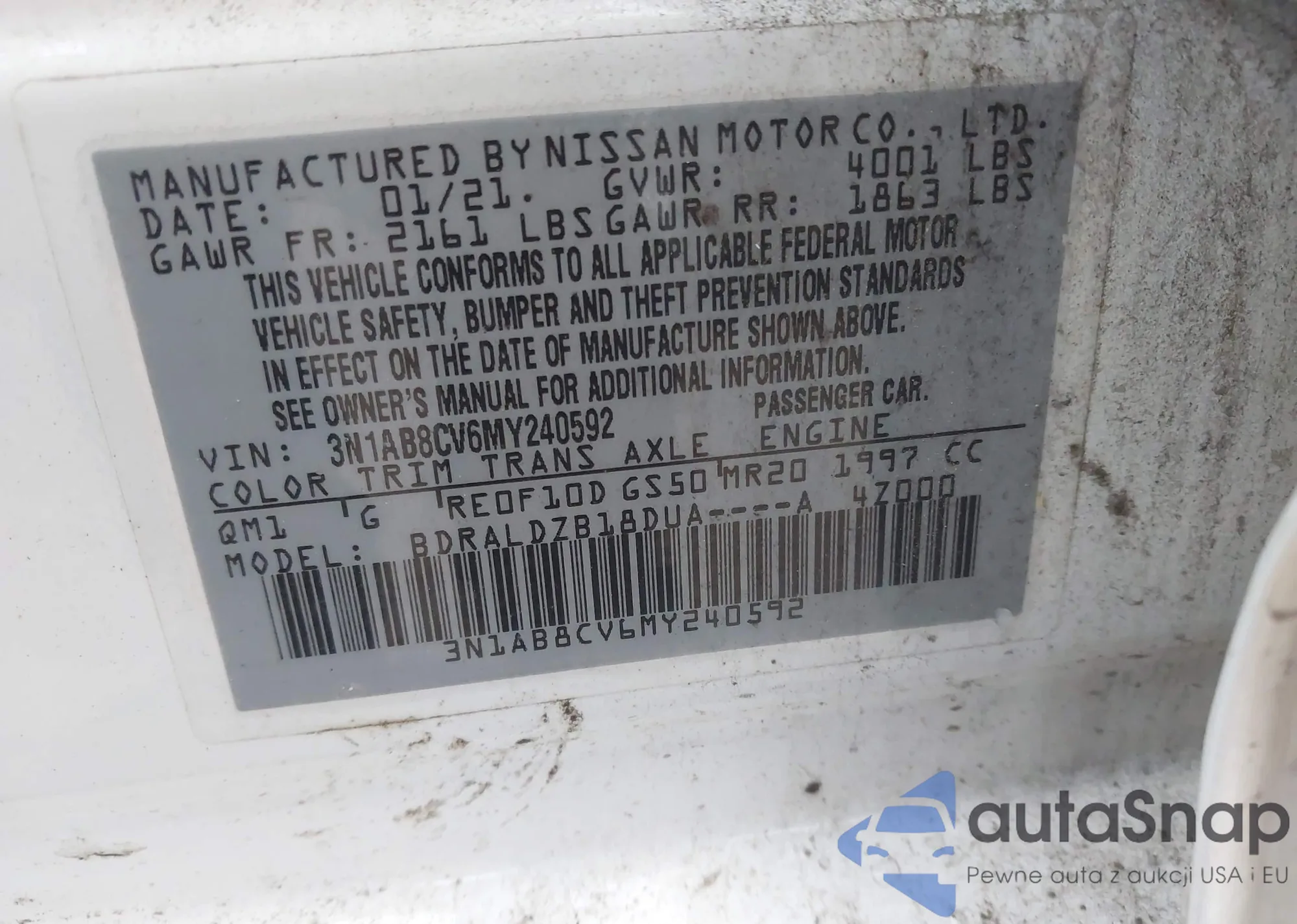• VIN 3N1AB8CV6MY240592