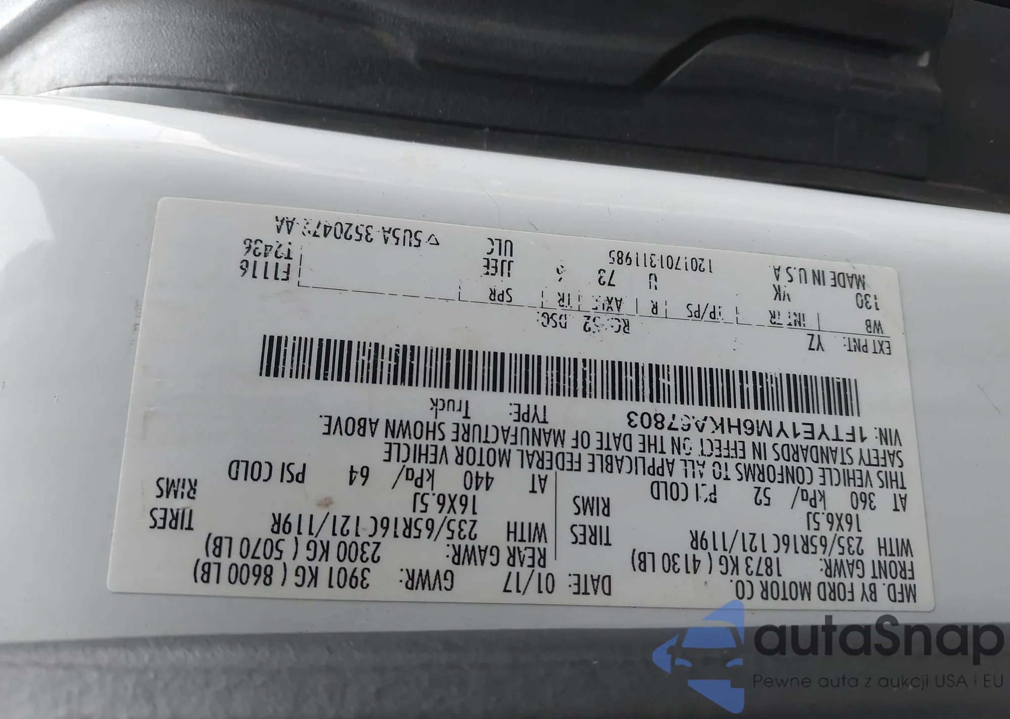 LOT: 43883307 VIN: 1FTYE1YM6HKA67803
