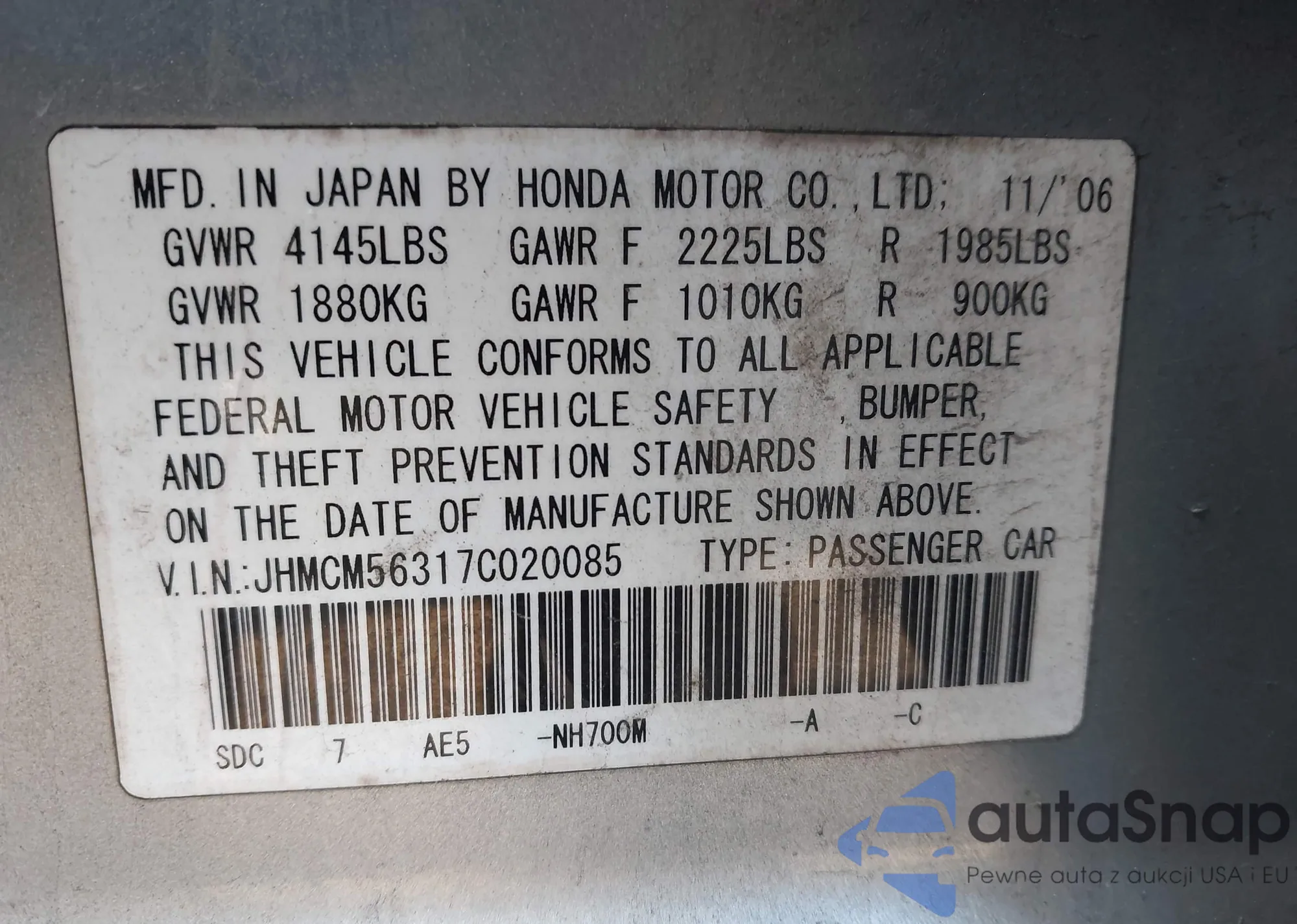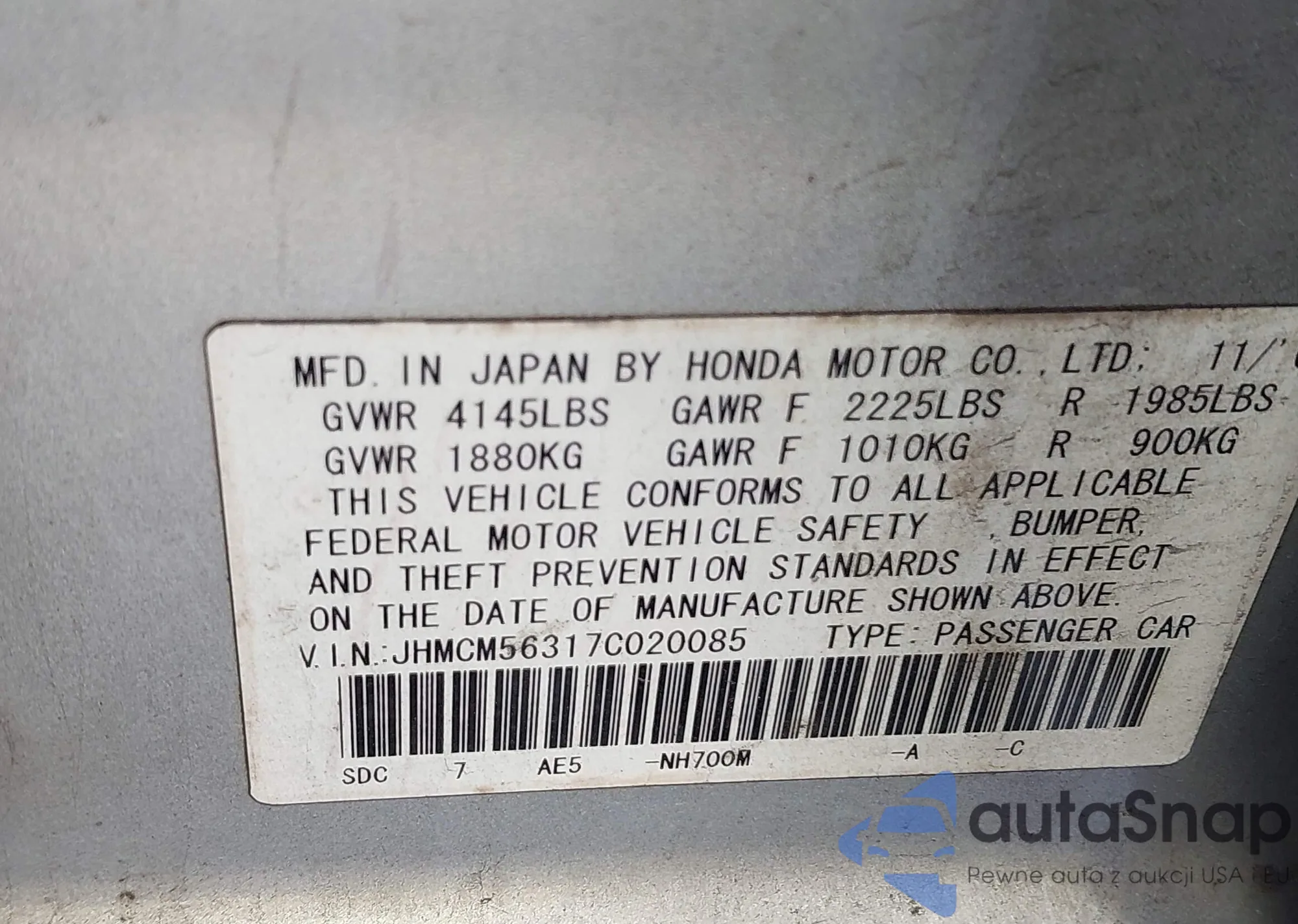 • VIN JHMCM56317C020085