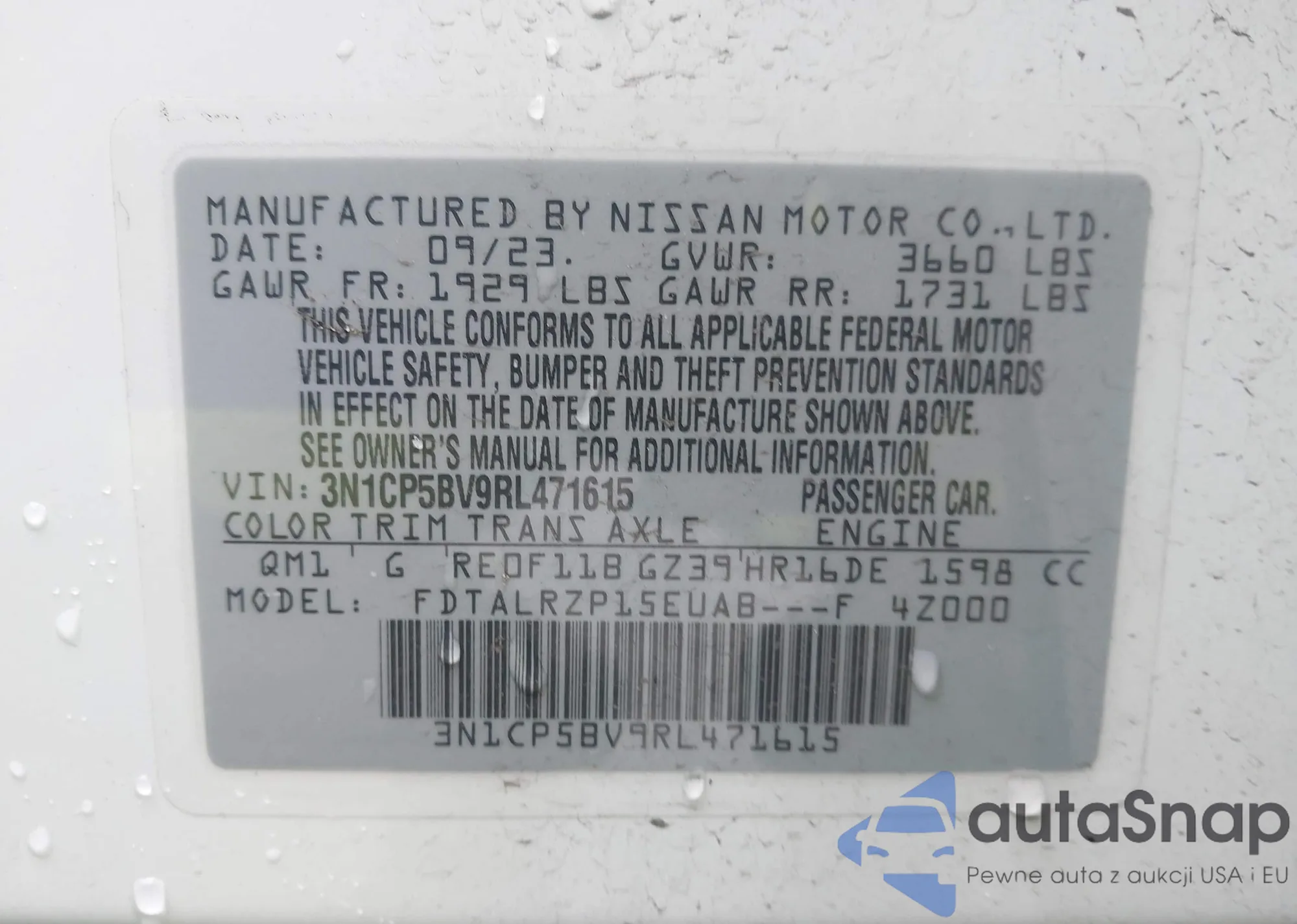 • VIN 3N1CP5BV9RL471615