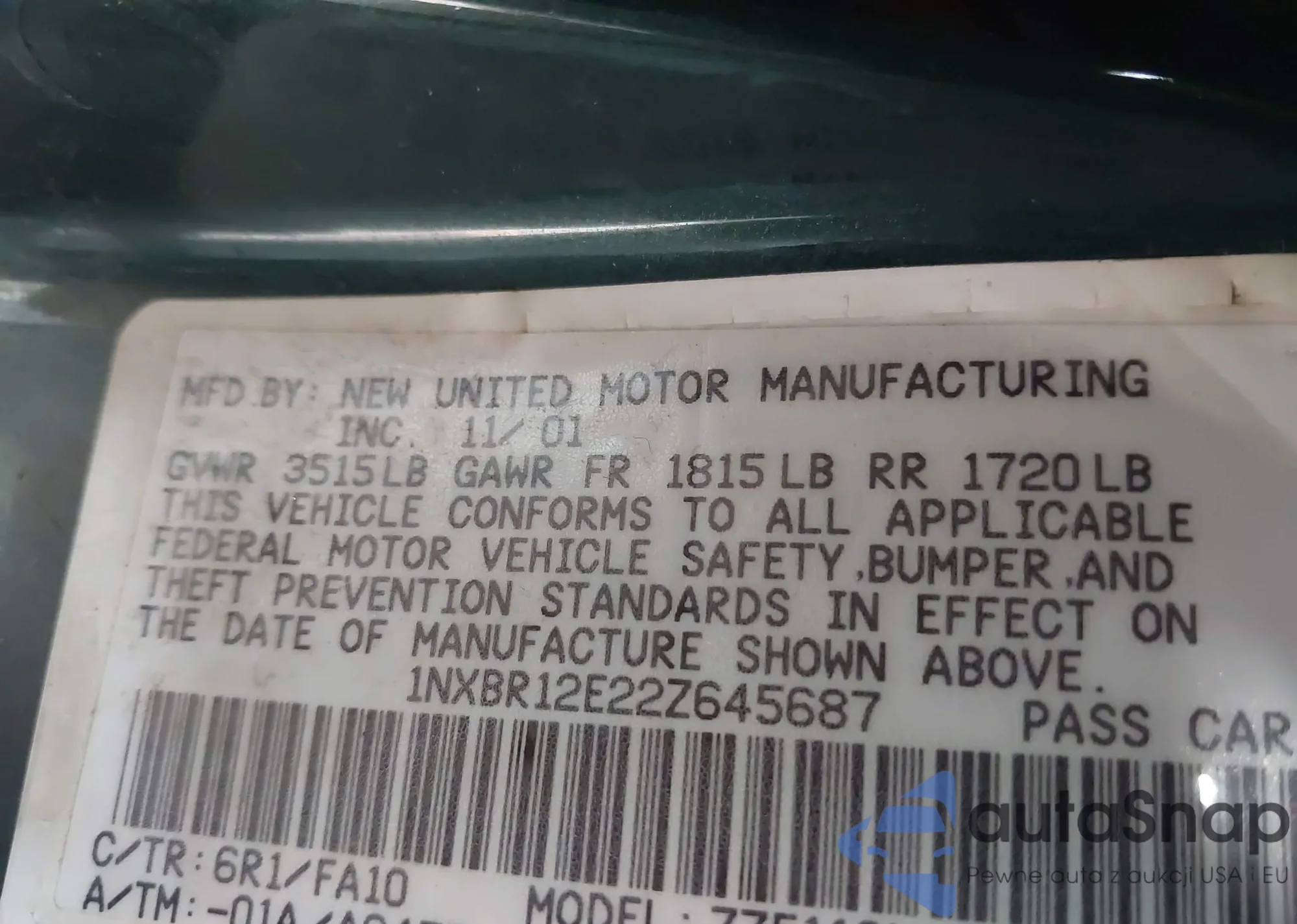 • VIN 1NXBR12E22Z645687
