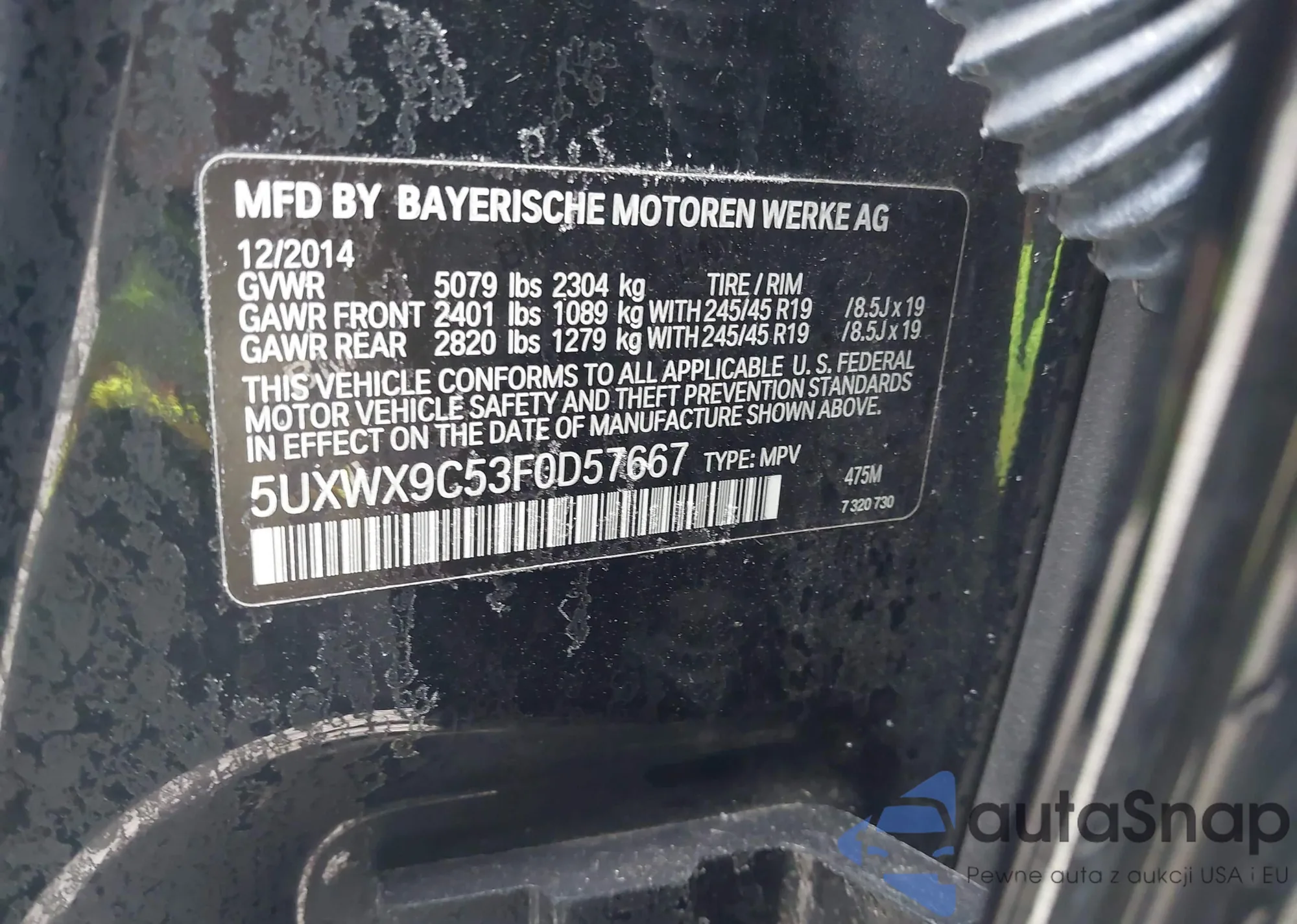 • VIN 5UXWX9C53F0D57667