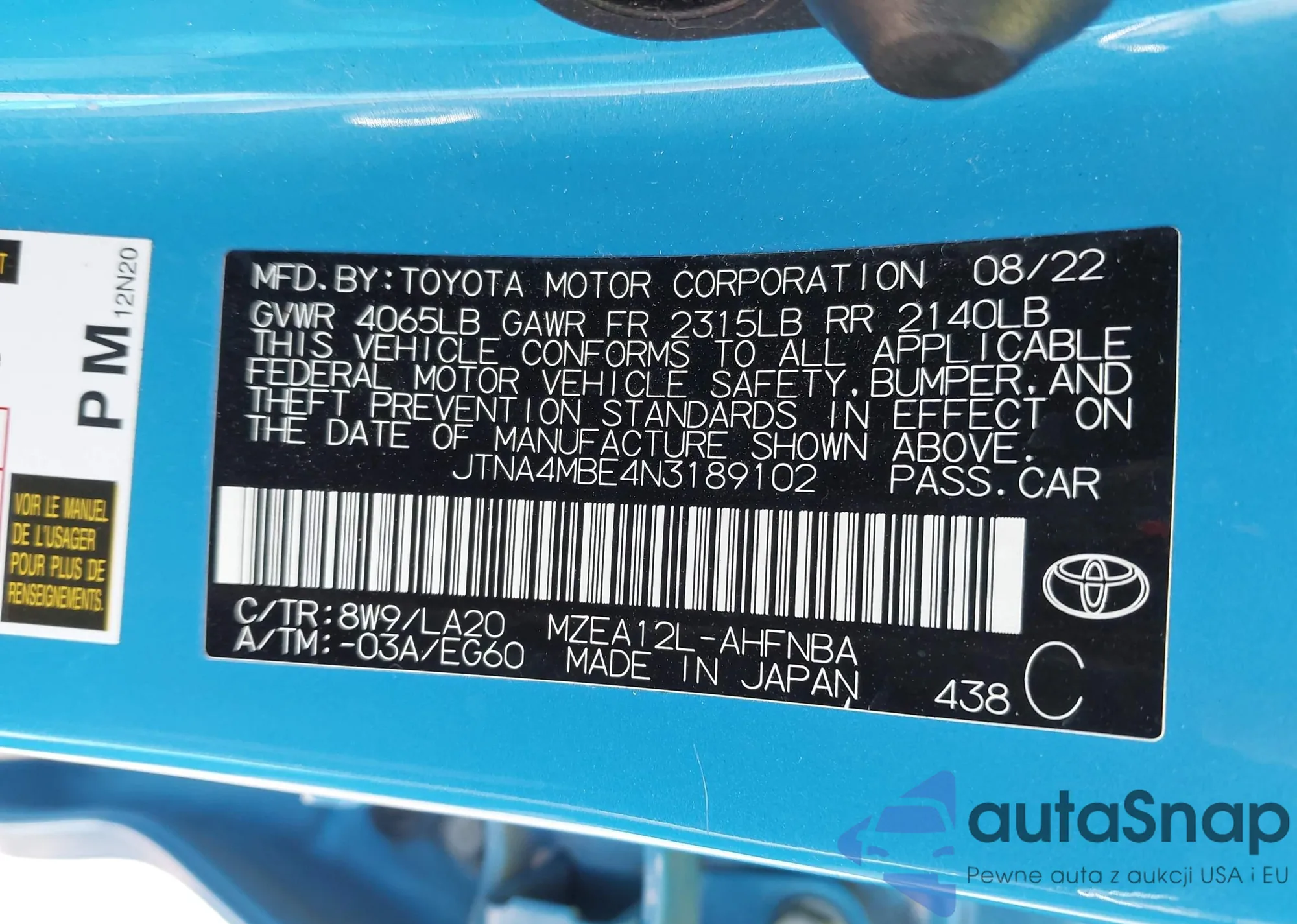 • VIN JTNA4MBE4N3189102