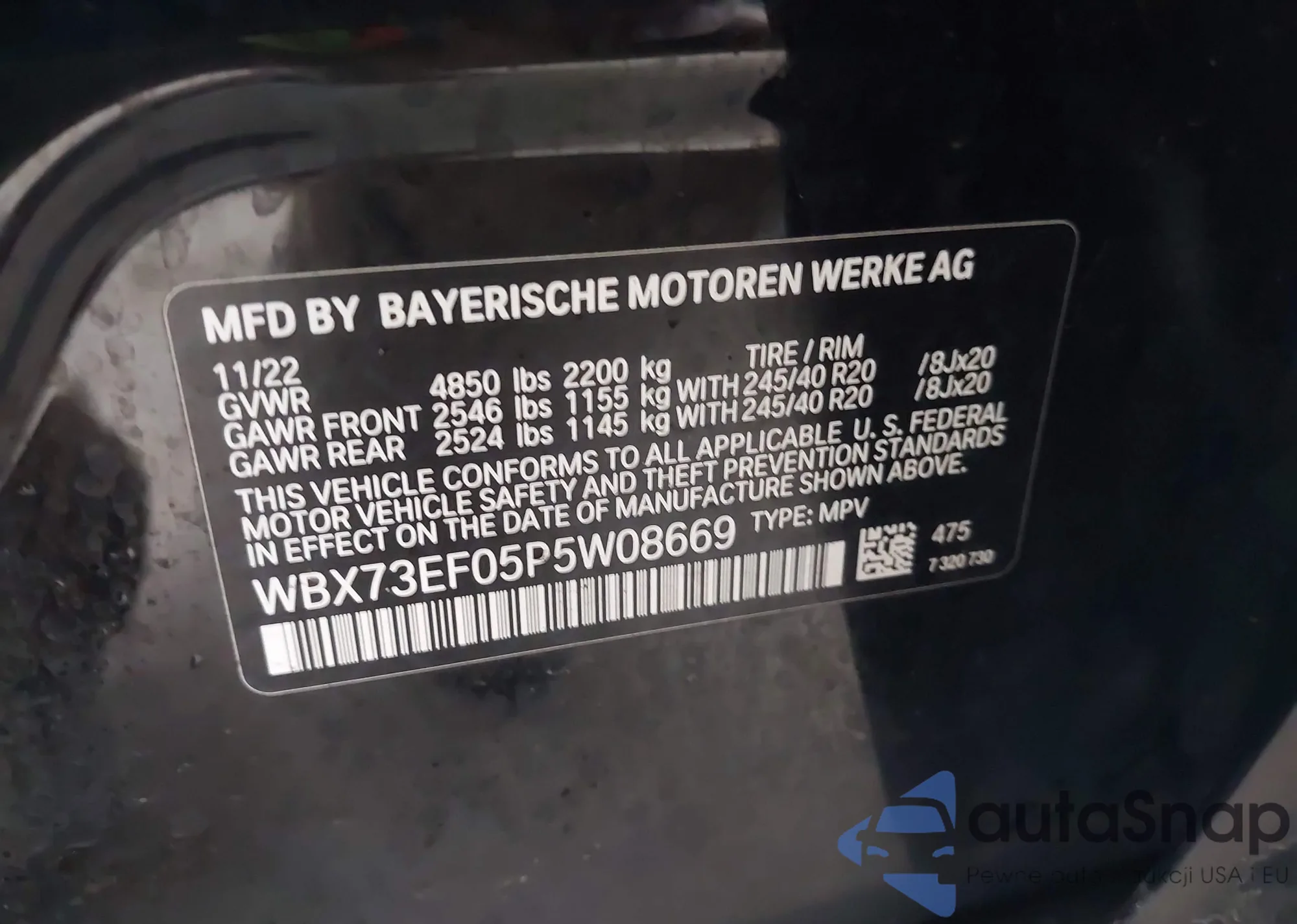 • VIN WBAVA33577PG49081