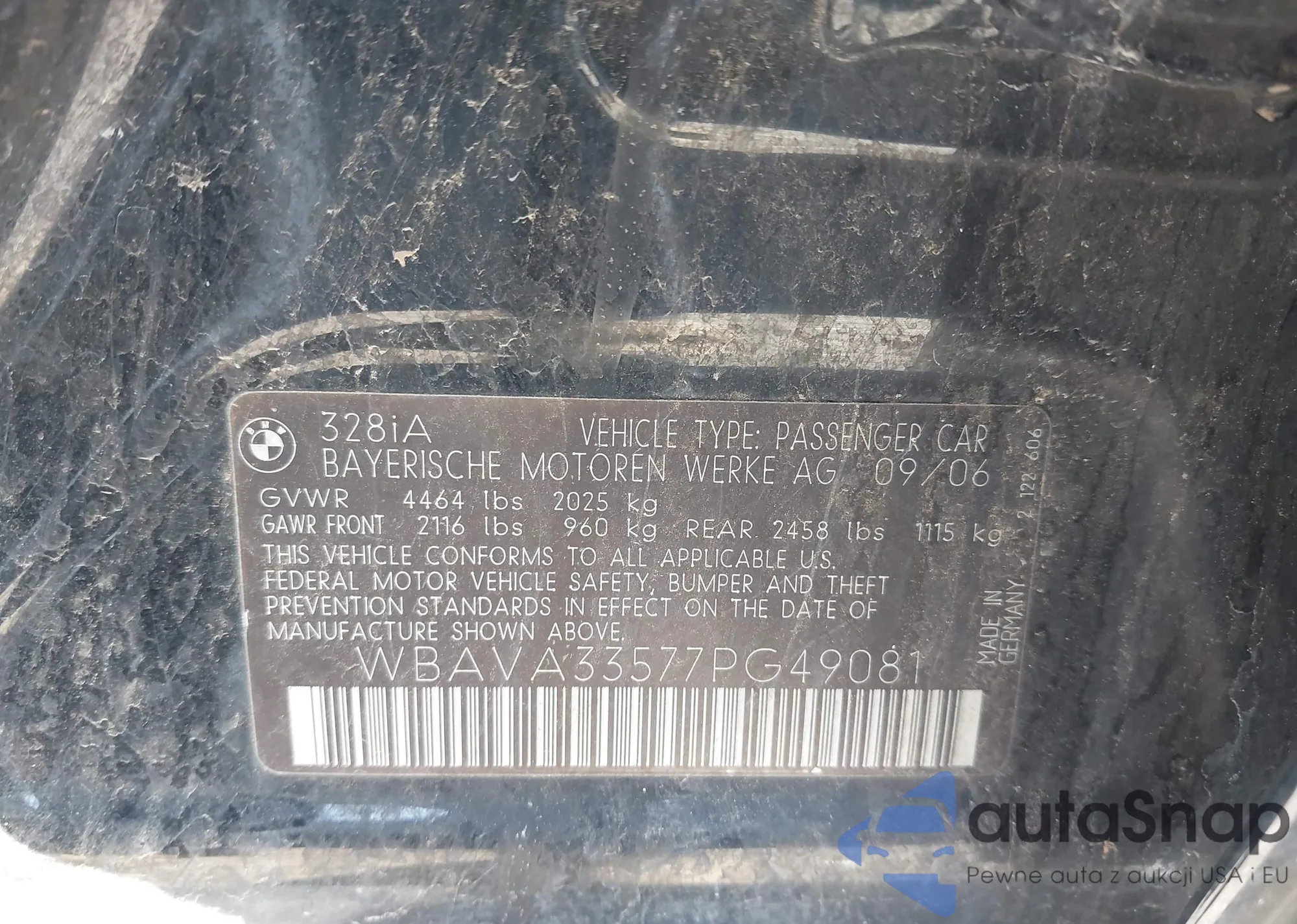 LOT: 43858549 VIN: WBAVA33577PG49081