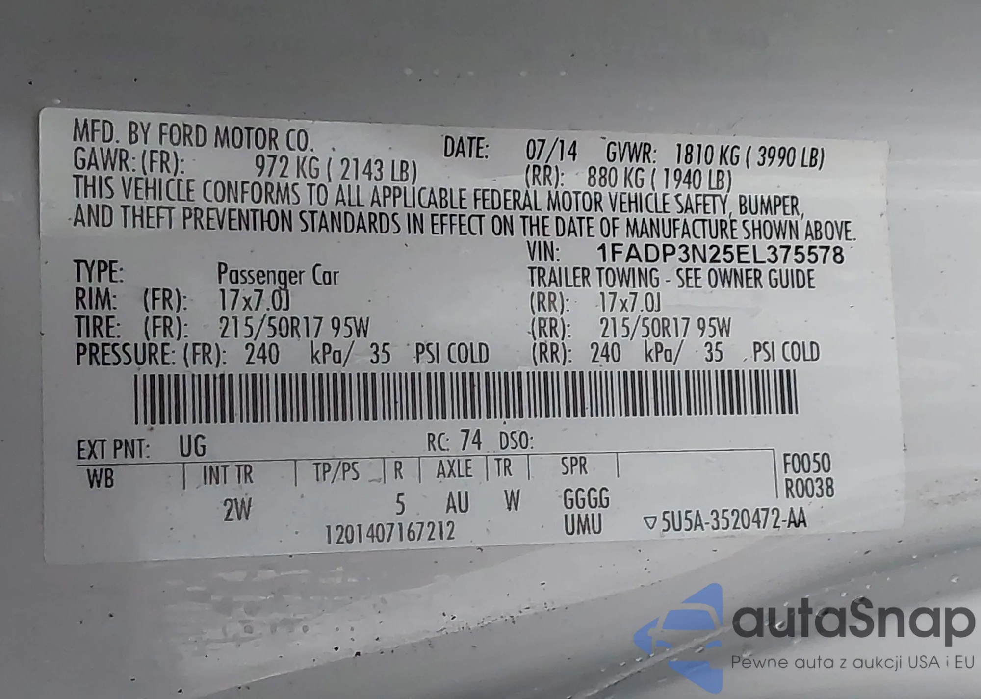 • VIN 3FA6P0LU6JR221677