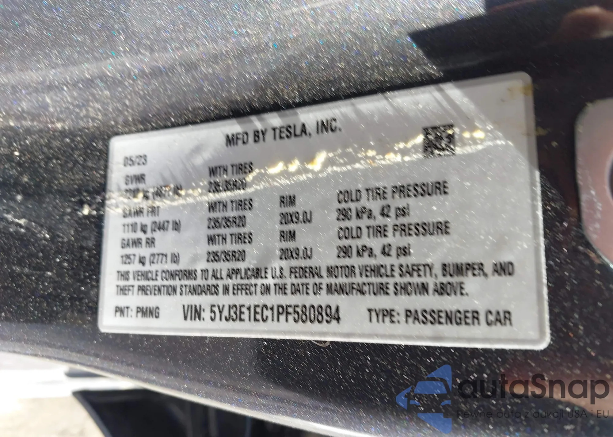 • VIN 5YJ3E1EC1PF580894