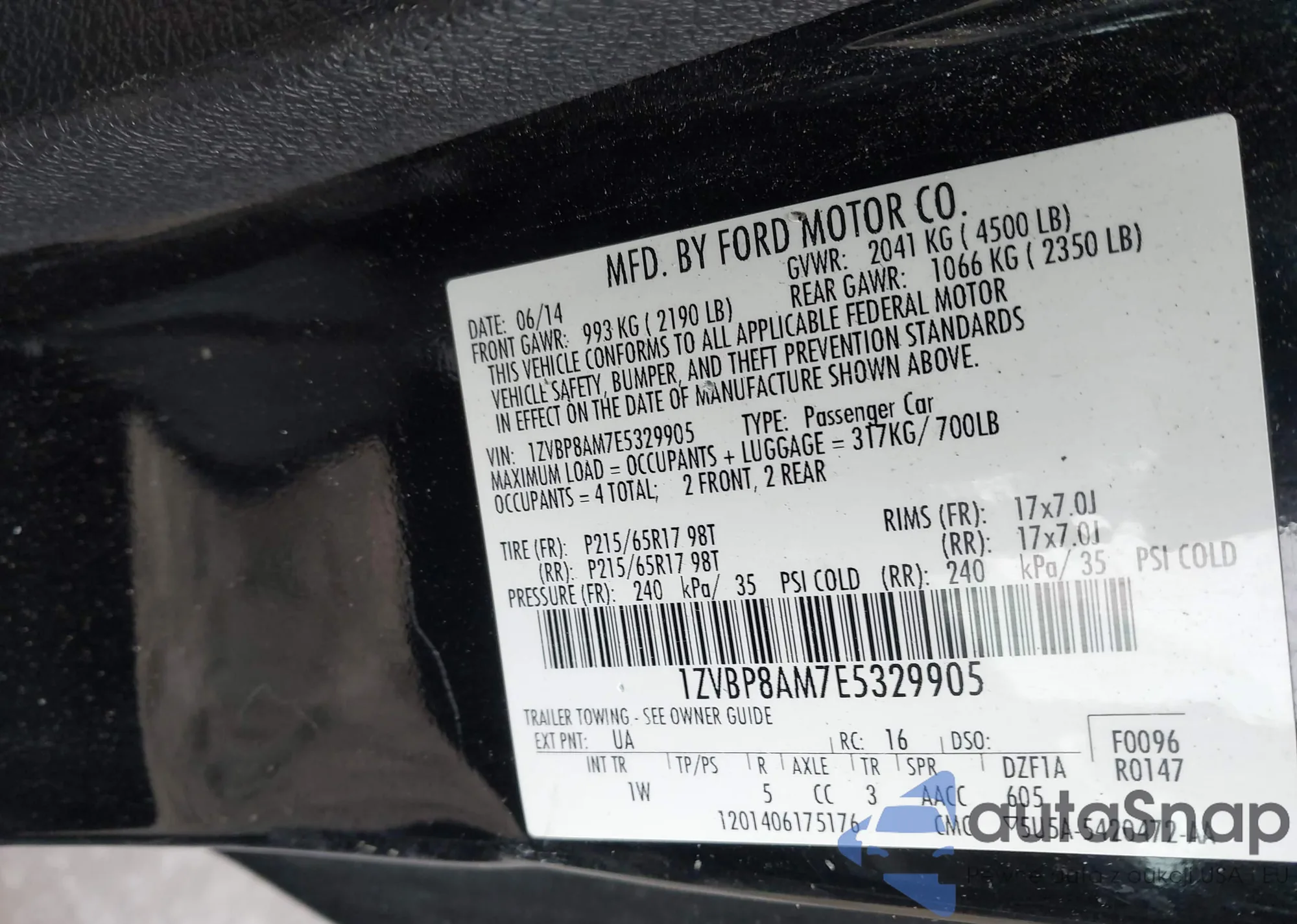 • VIN 1ZVBP8AM7E5329905