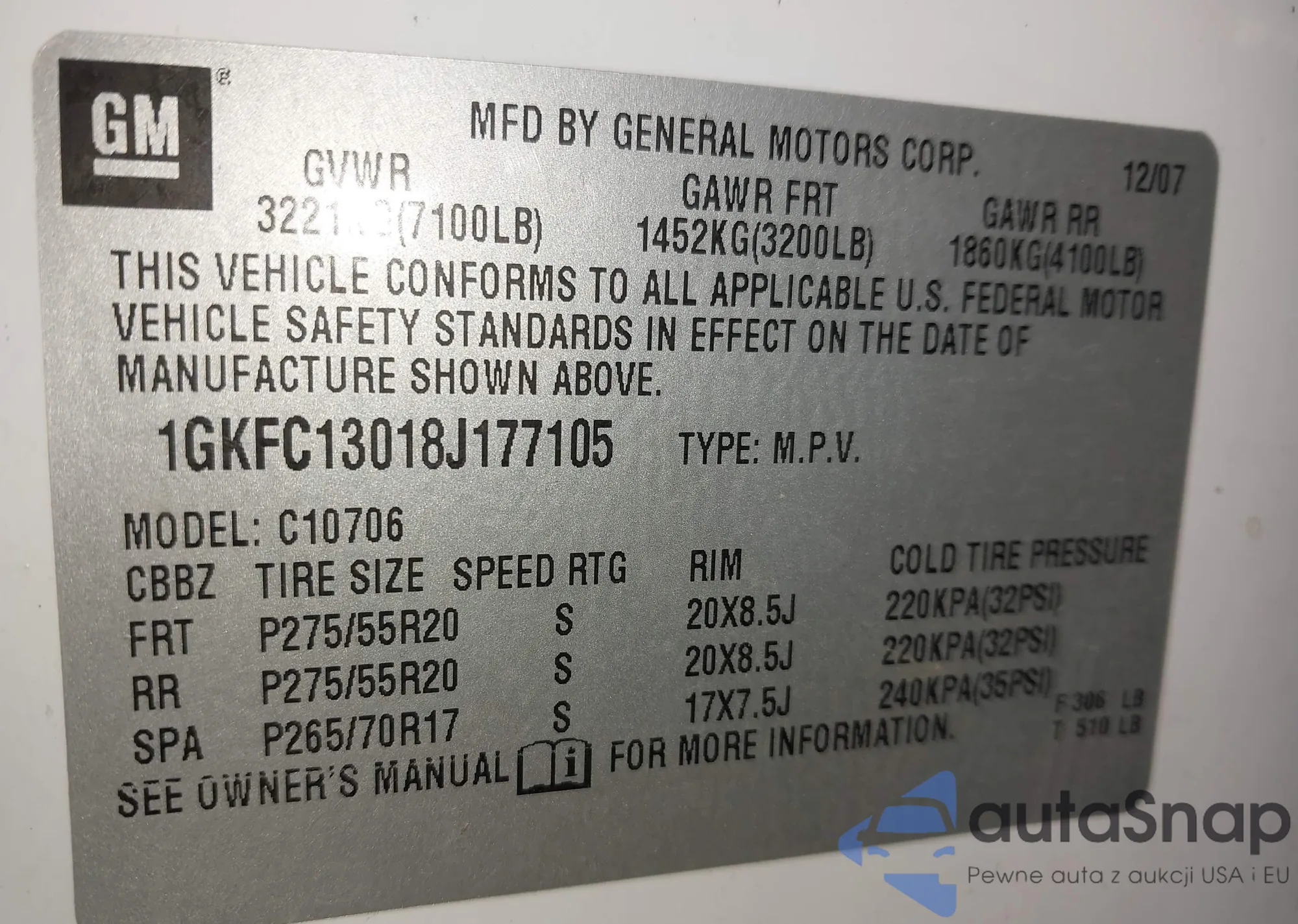 LOT: 43859114 VIN: 1GKFC13018J177105