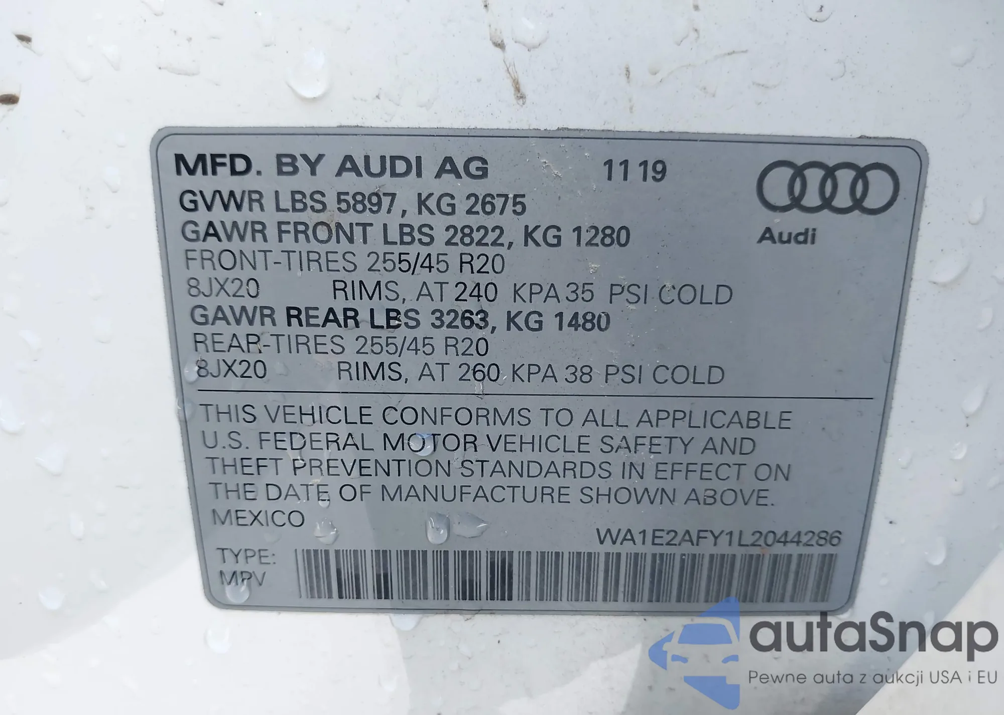 LOT: 43922883 VIN: WA1E2AFY1L2044286