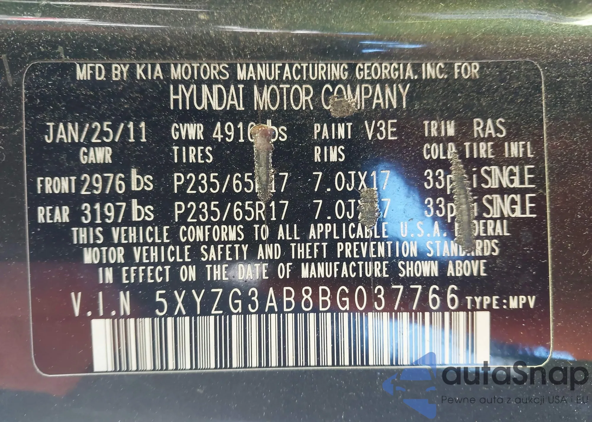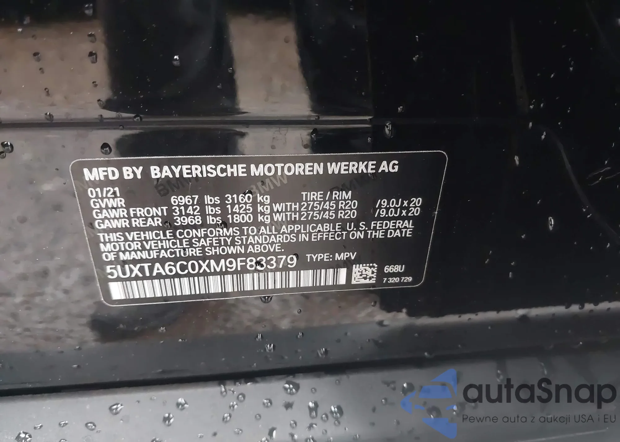 • VIN 5UXTA6C0XM9F83379