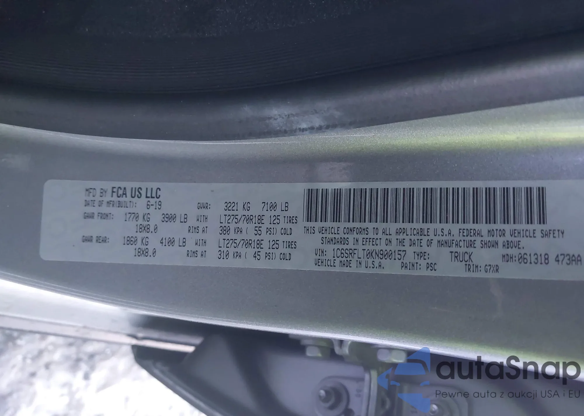 LOT: 43955085 VIN: 1C6SRFLT0KN900157