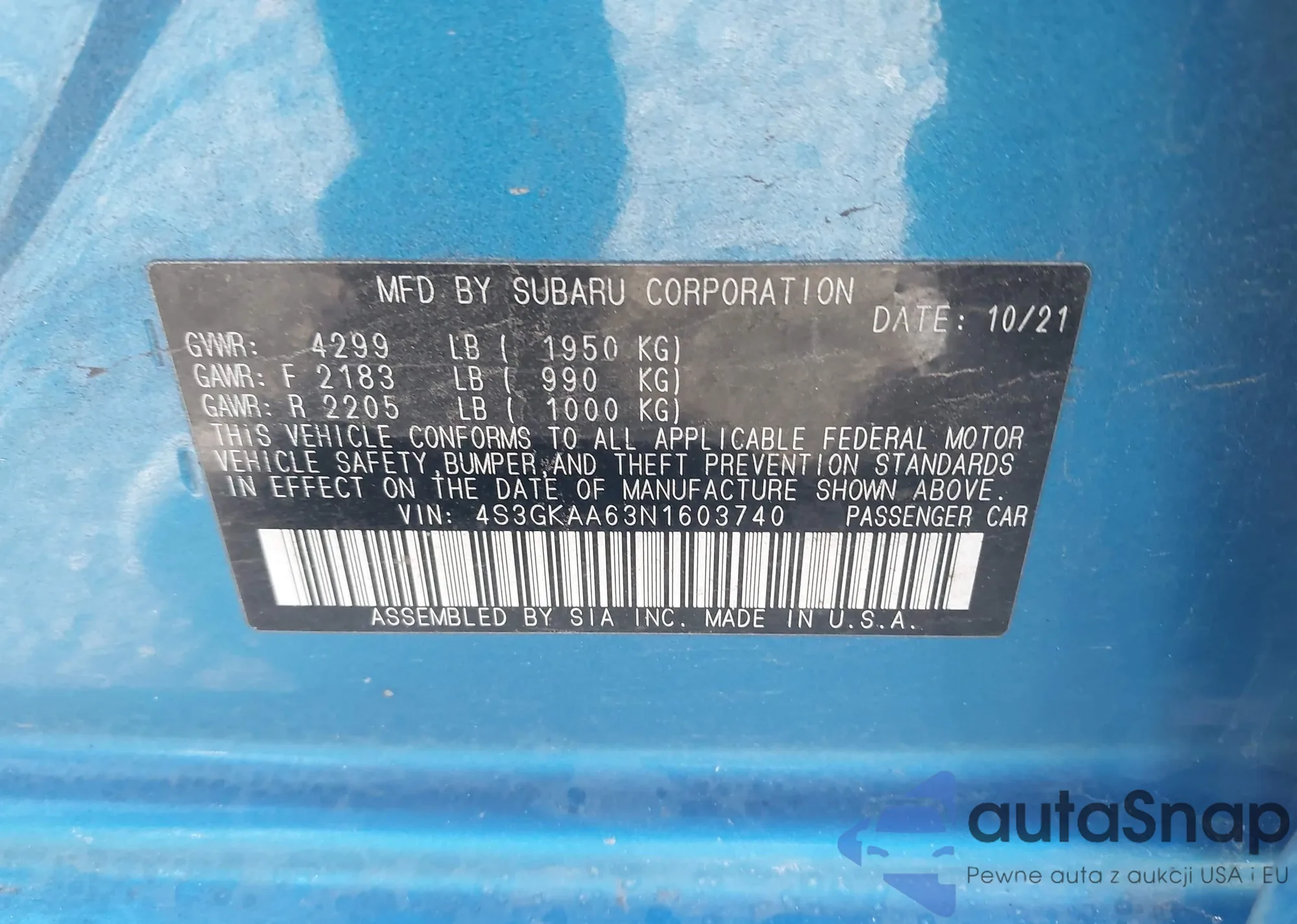 • VIN 4S3GKAA63N1603740