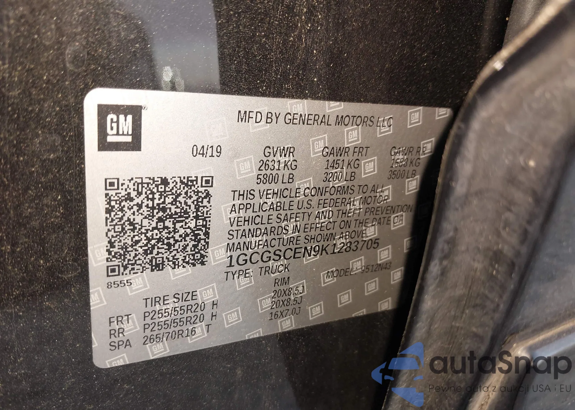 LOT: 43989305 VIN: 1GCGSCEN9K1283705