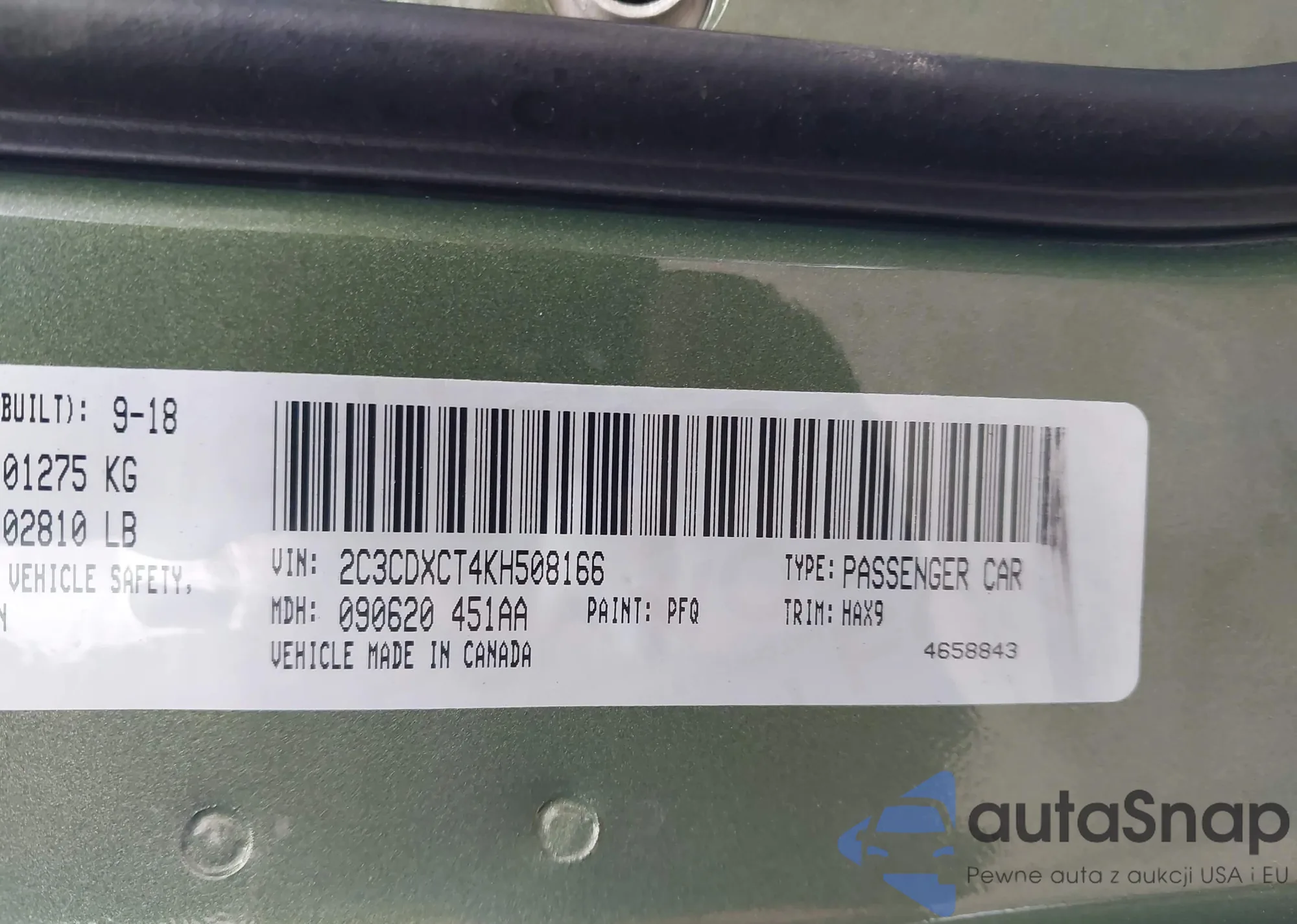 • VIN 2C3CDXCT4KH508166