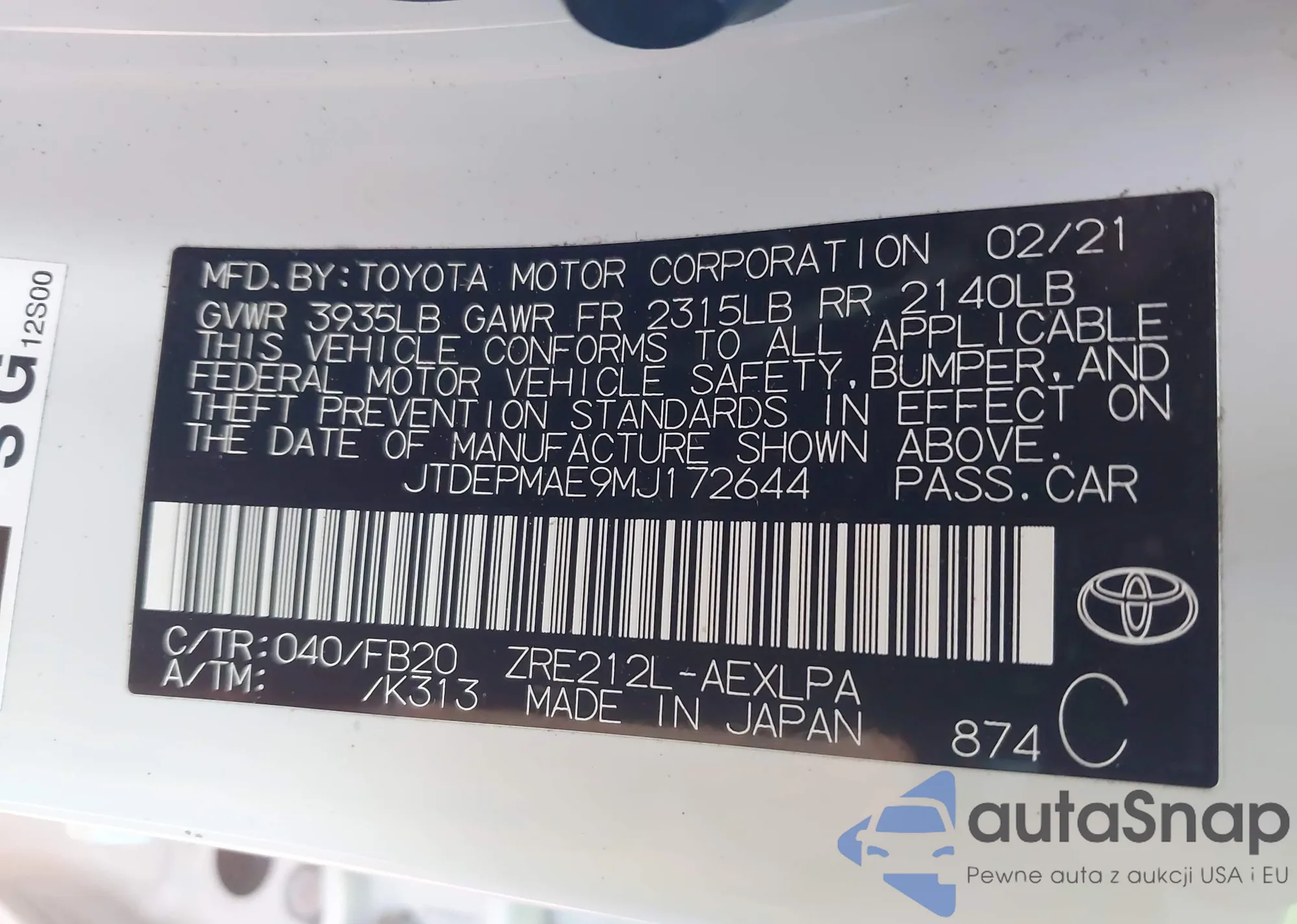 • VIN JTDEPMAE9MJ172644