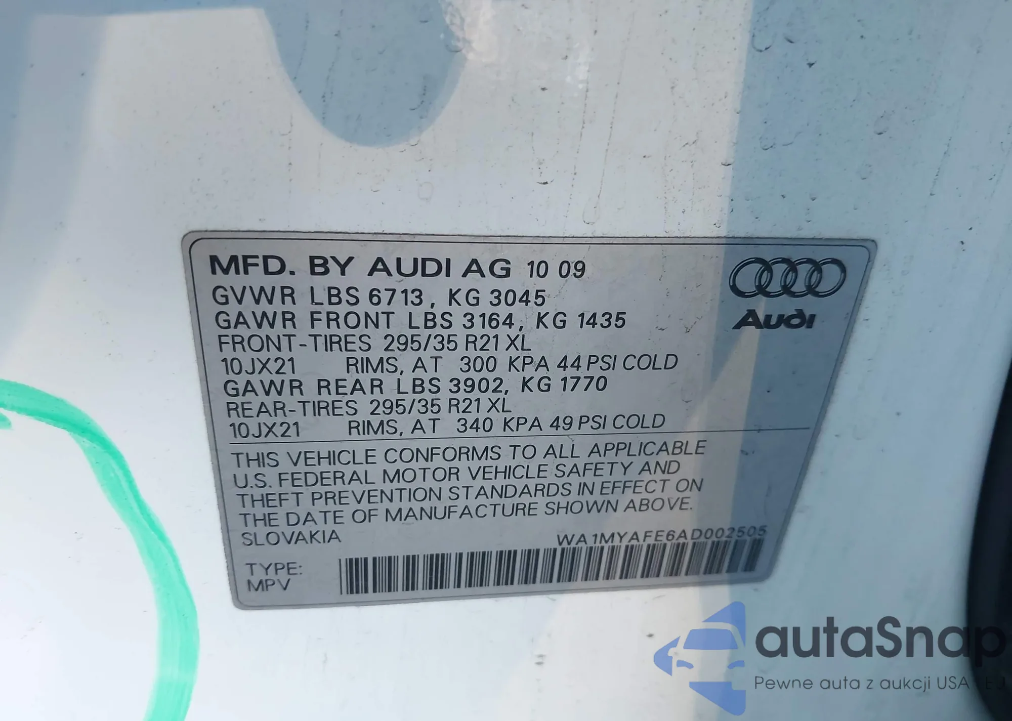 • VIN WA1MYAFE6AD002505