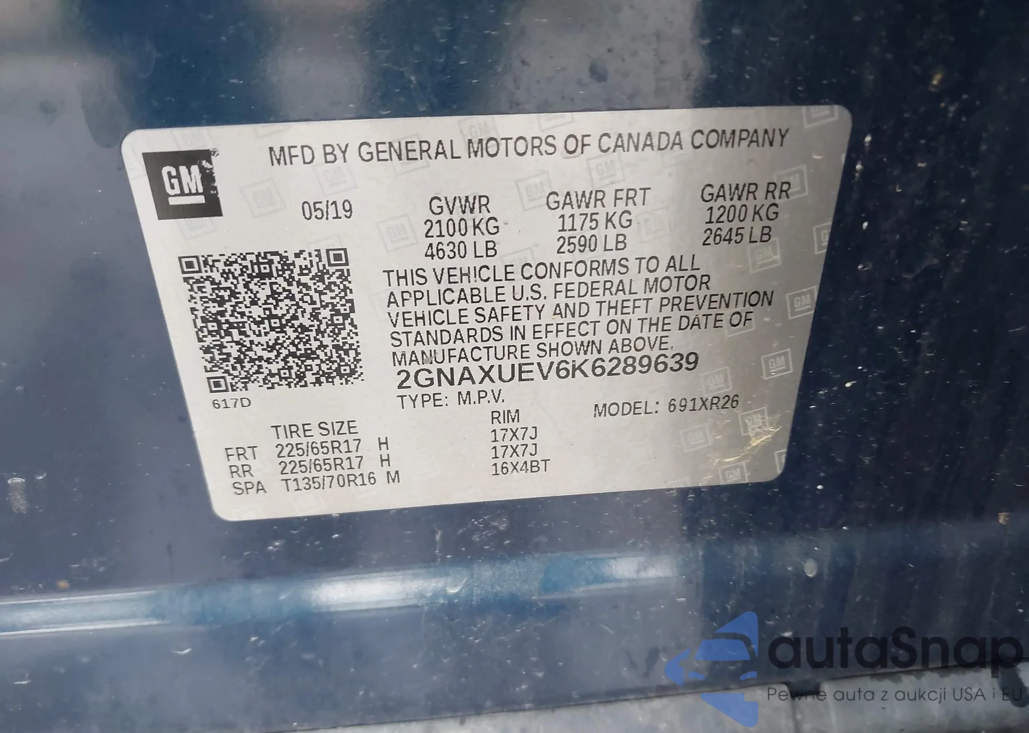 • VIN 2GNAXUEV6K6289639
