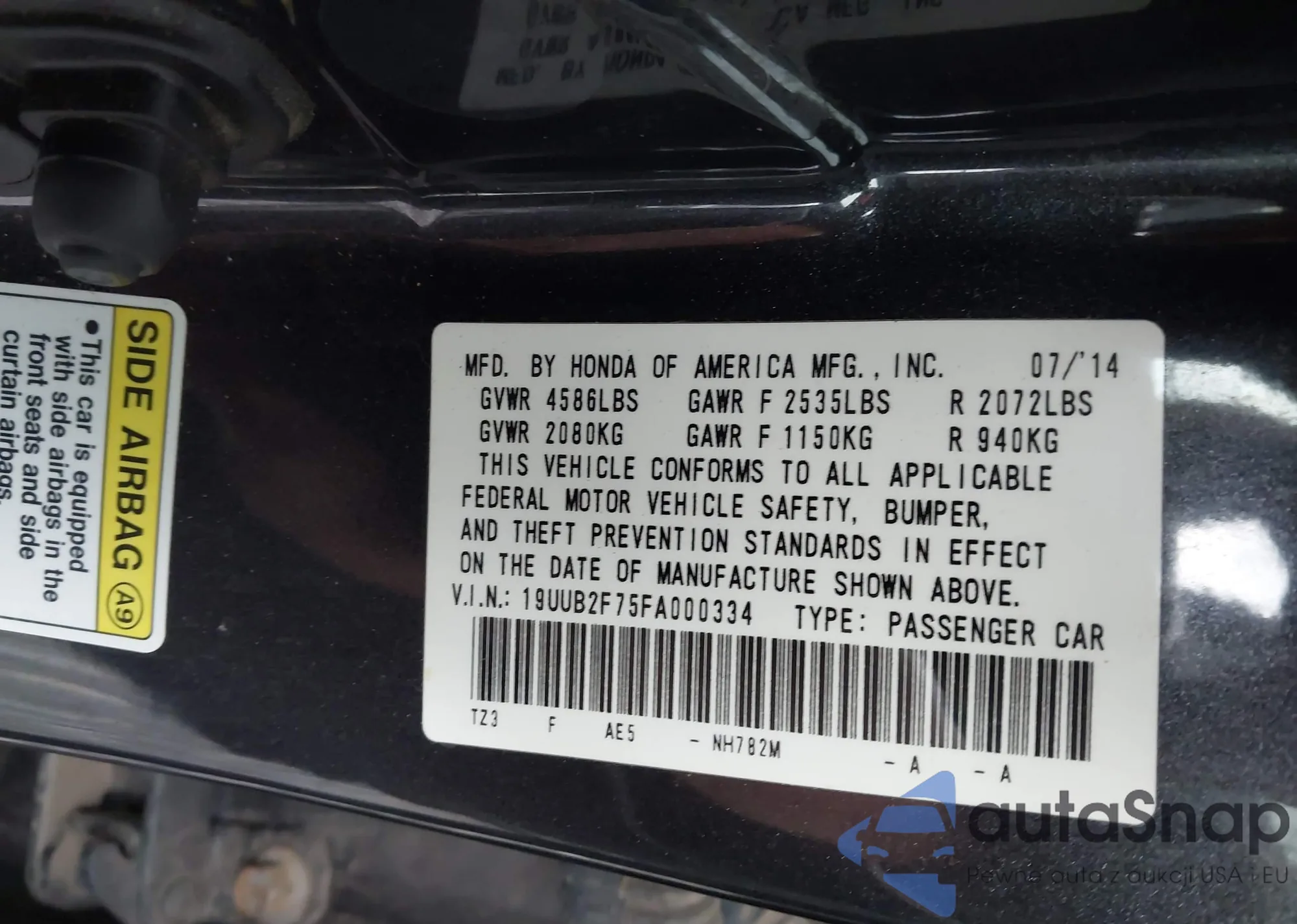 • VIN 19UUB2F75FA000334